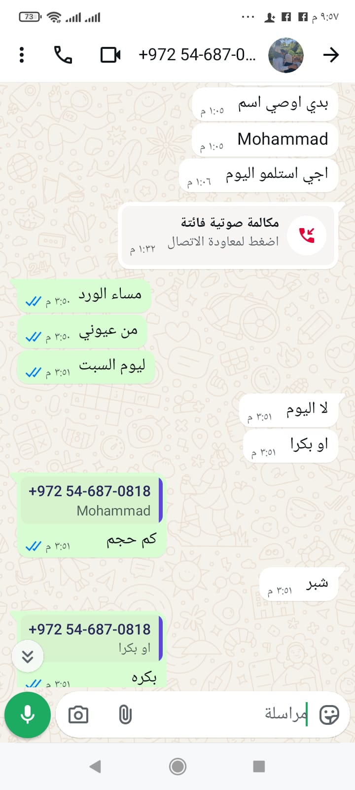 24 شادي زلوم مندوبه إسراء استلام بكره ع 12 0546870818 2026-01-07 22:06:32 كلمه اسراء