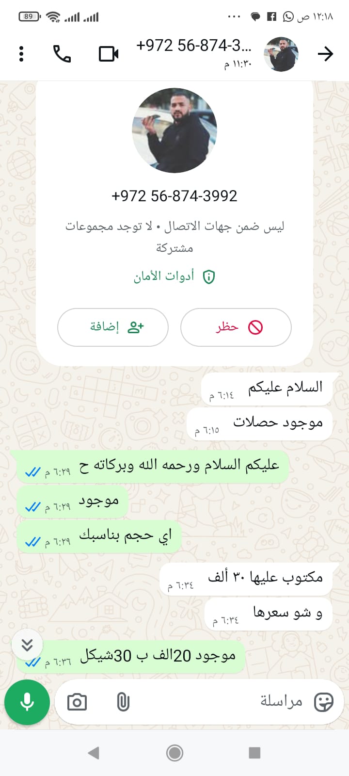 11 ديما البطش مندوبه إسراء استلام محل في كمان طلبيه بس جهزوها 972594830755 2026-01-11 02:40:57 مصليه مع قران اسراء