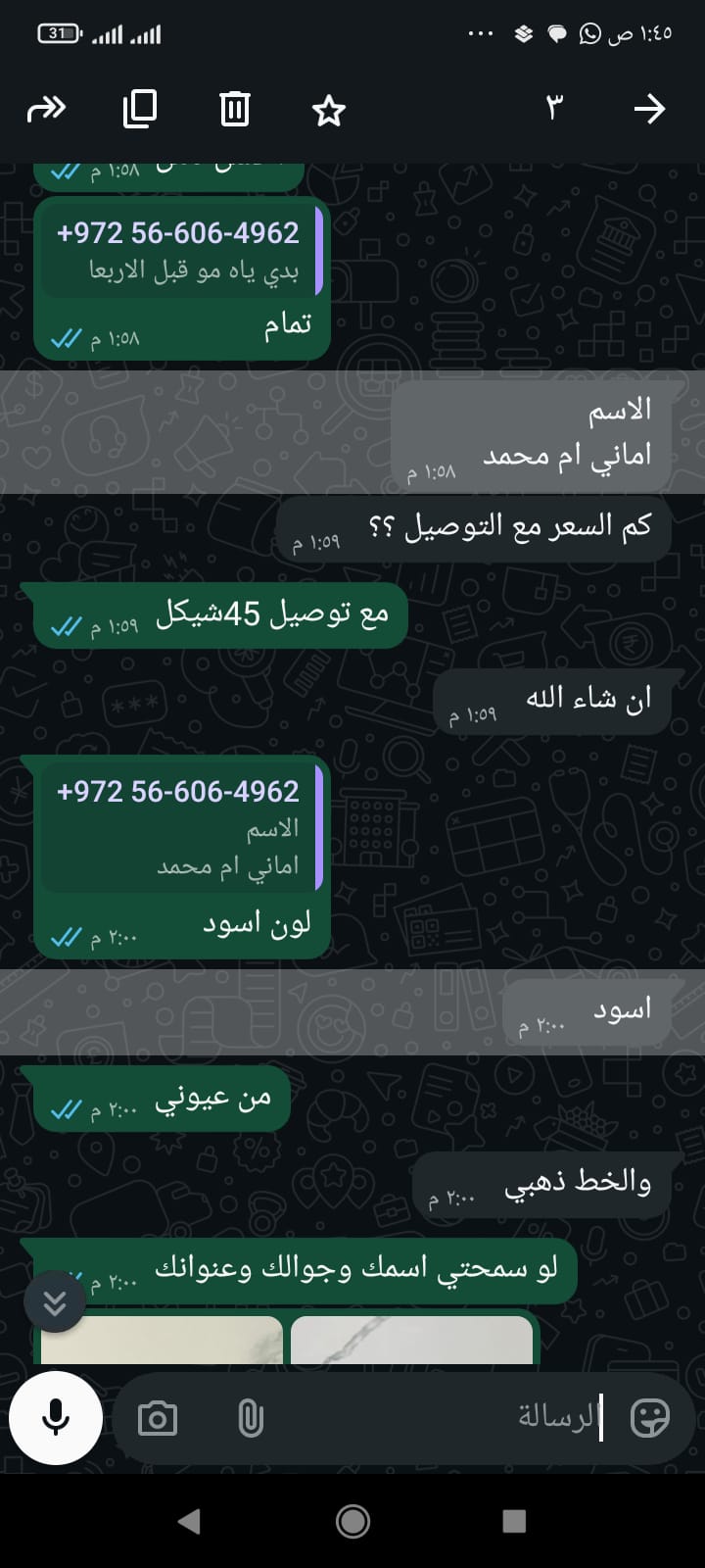 49 حنين ابو سيف - المندوبة سالي 0503055908 2026-02-15 15:00:07 نعلين دكانه السهل اخضر قضاء رام الله سالي الفاخوري