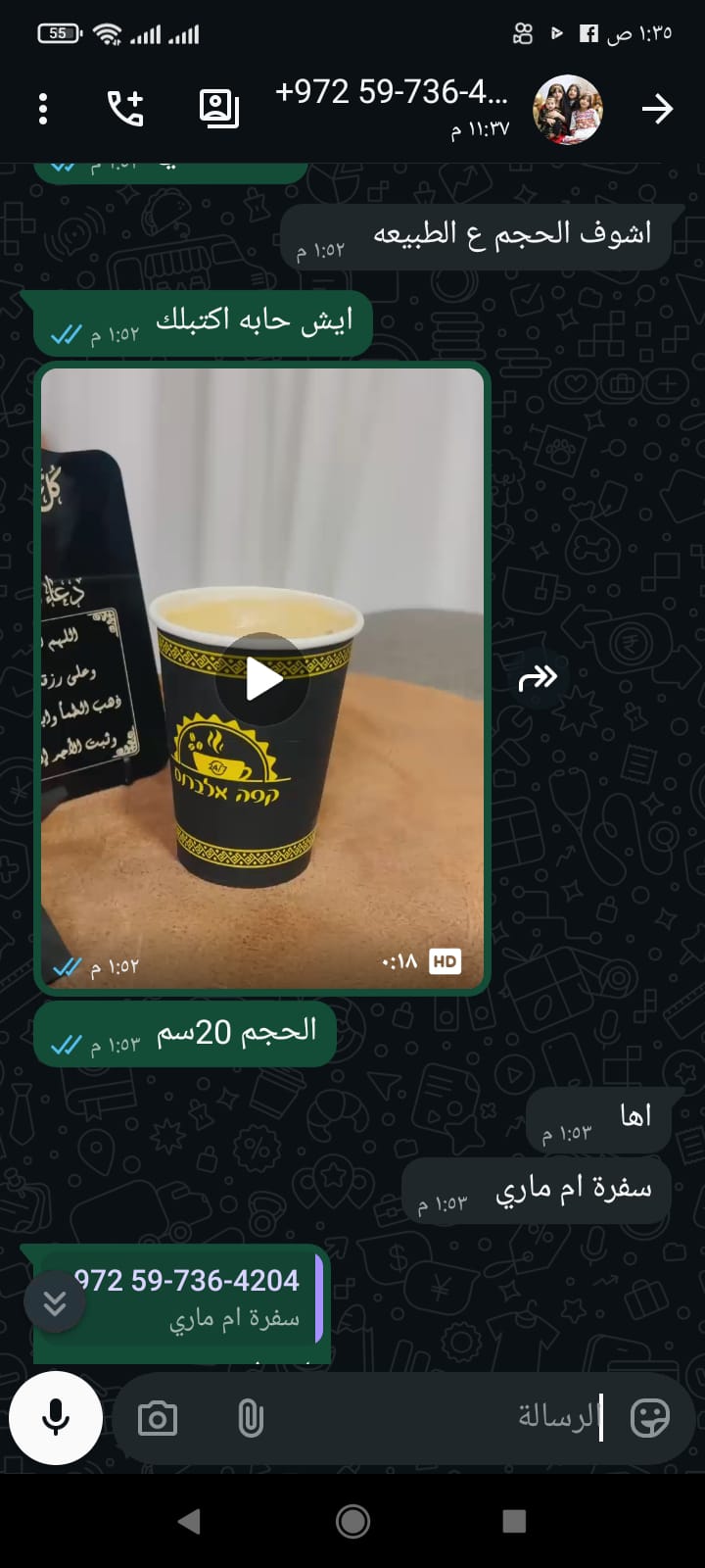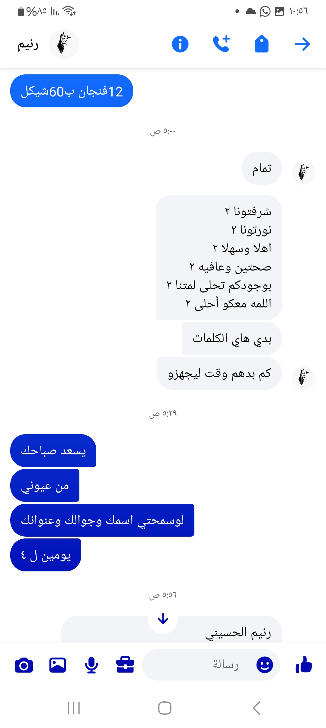 20 رنيم الحسيني مندوبه إسراء توصيل داخل الخليل 0595226527 2026-02-22 00:20:09 فناجين اسراء