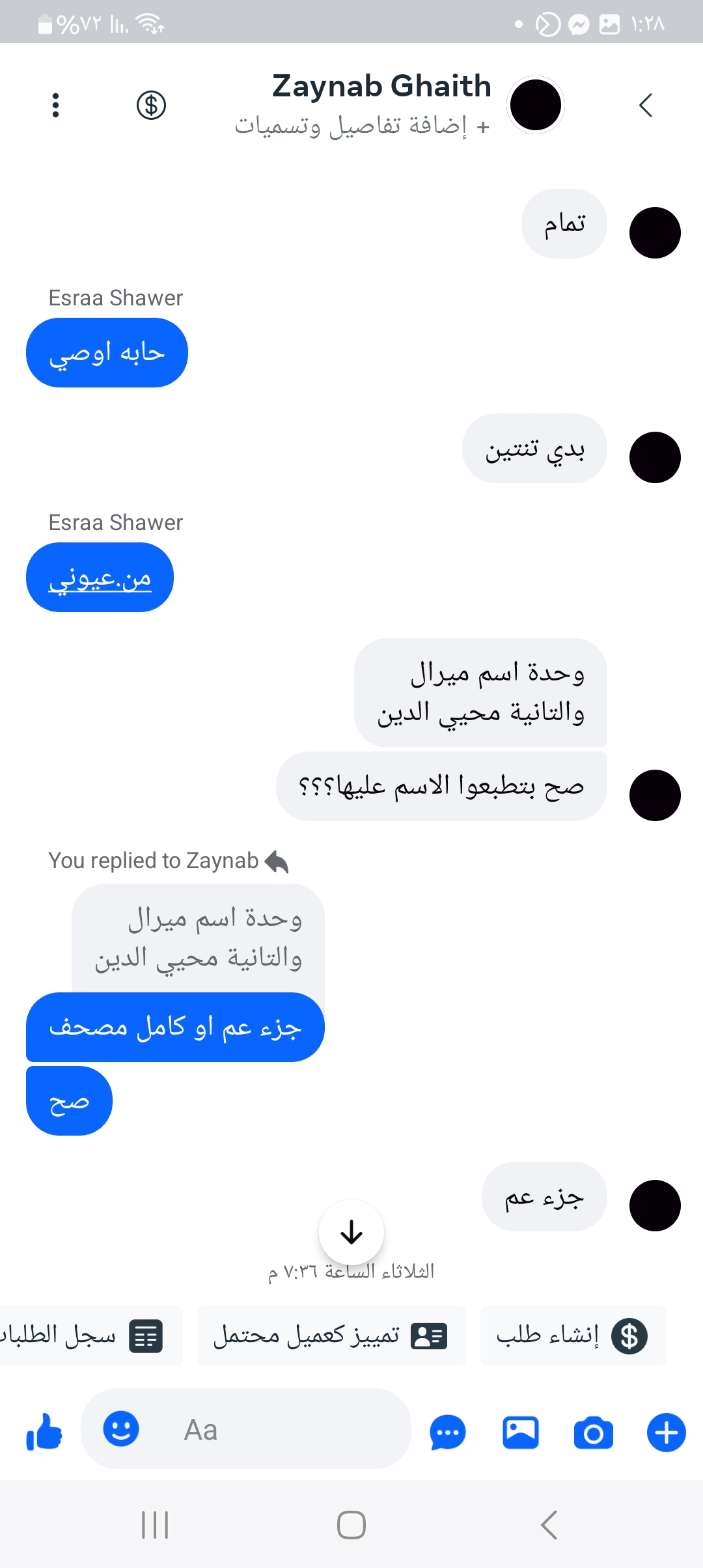 آية سمير السراحين مندوبه إسراء استلام محل |