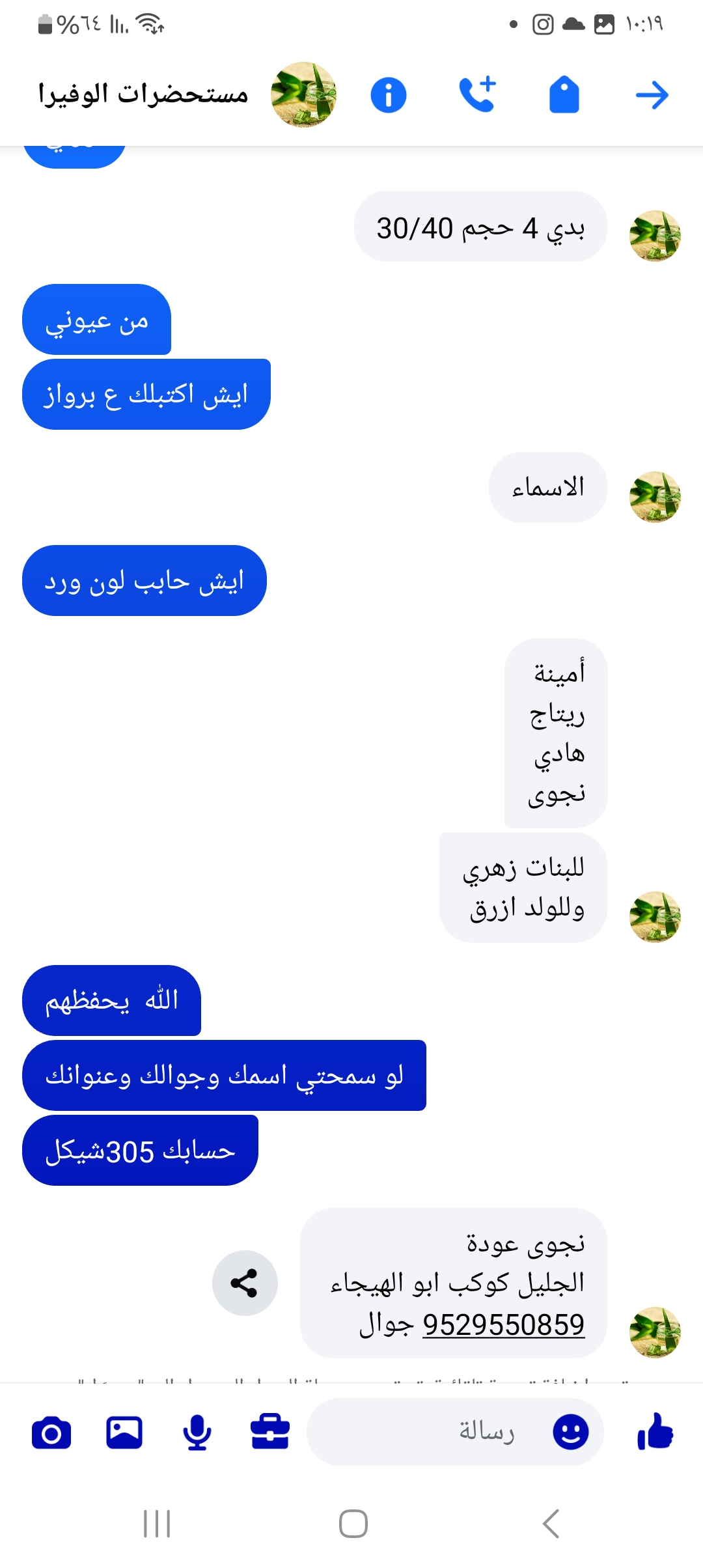 ولاء محمد خميس رصرص مندوبه إسراء استلام محل اليوم |