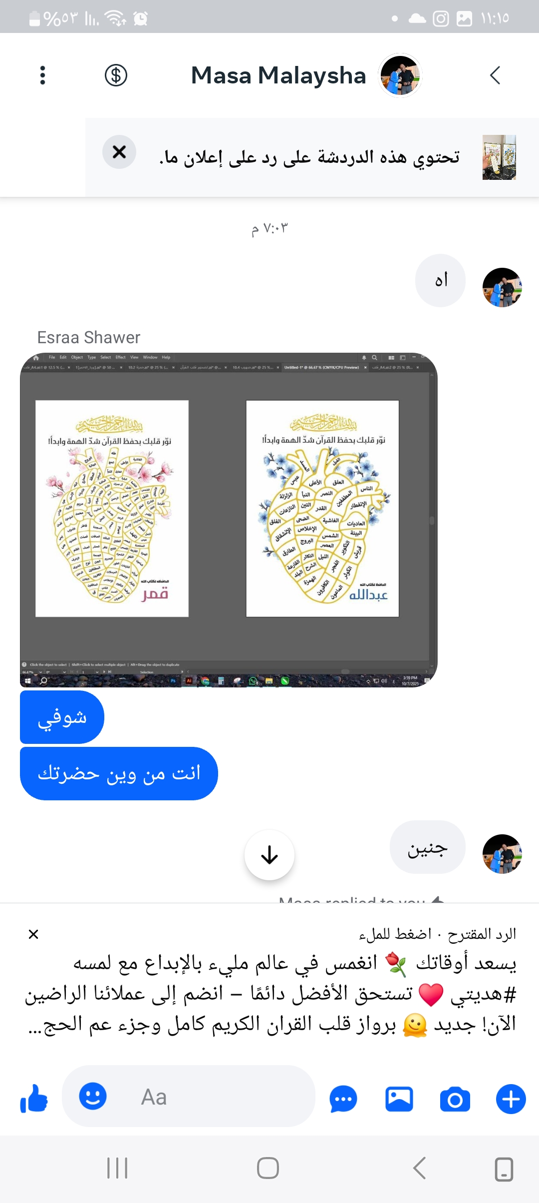 رهف حلايقه مندوبه إسراء برواز بازل قلب القران للمصحف كامل الحجم A4 |