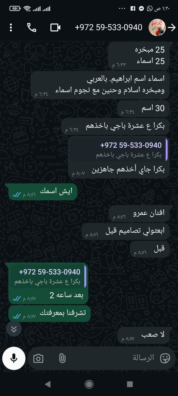 محمد علي سياعره مندوبه إسراء بيع جمله استلام بكره ع عصر |