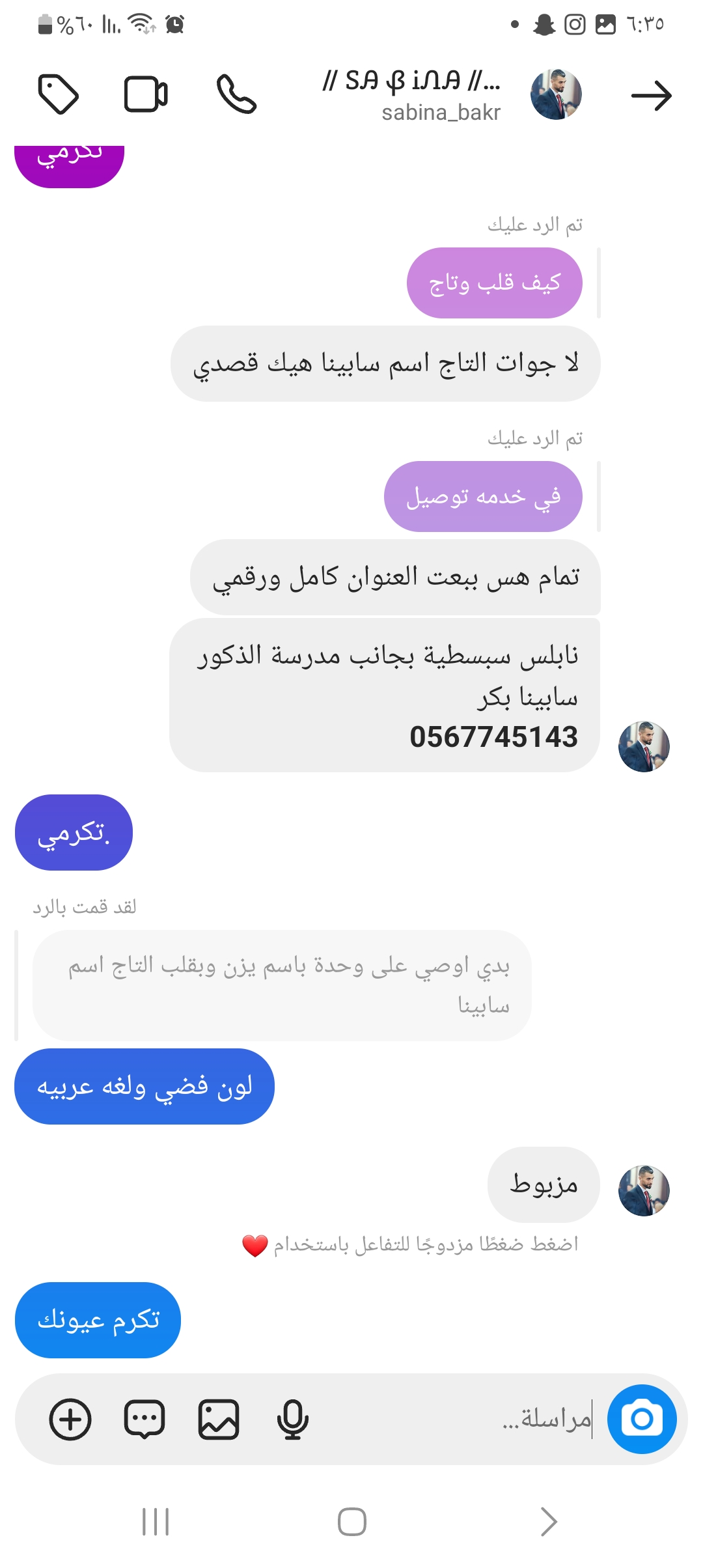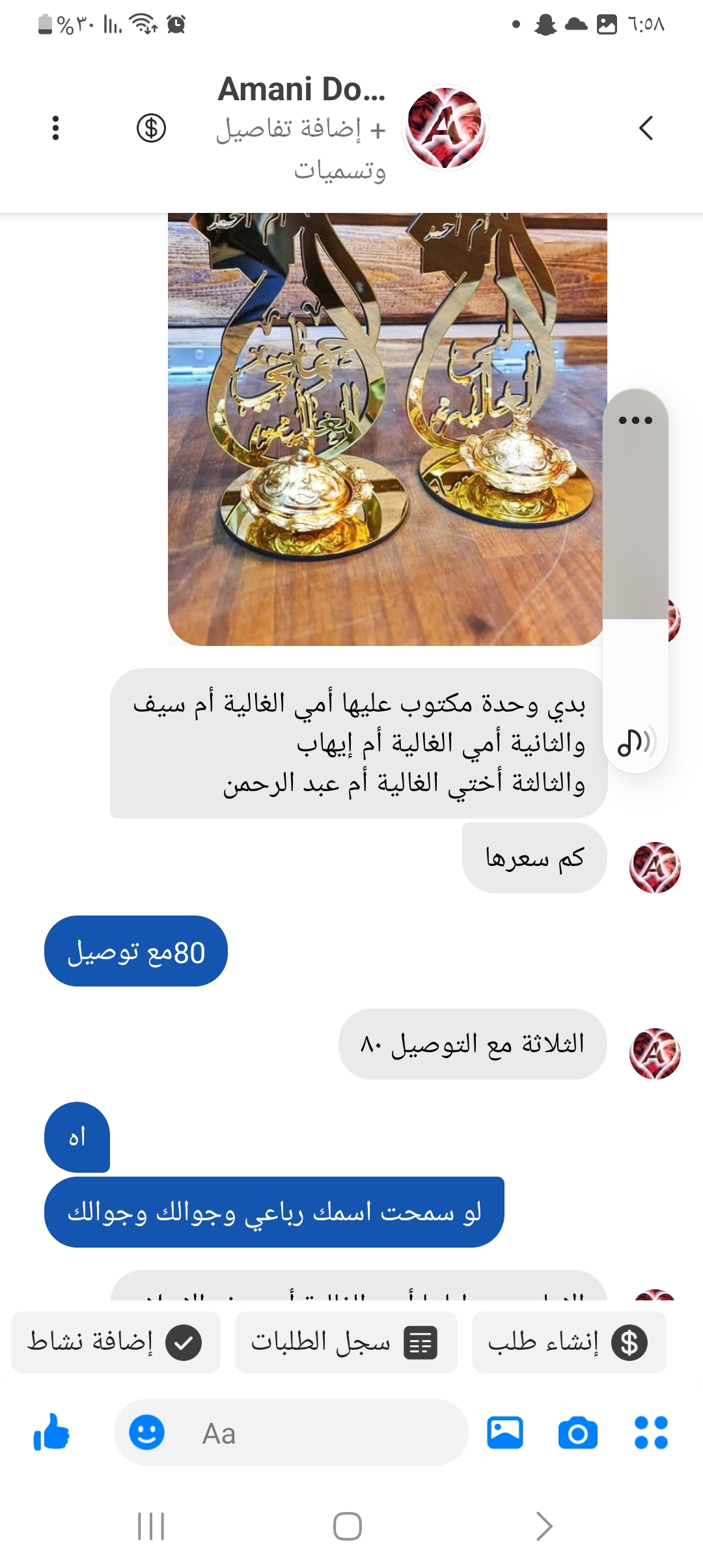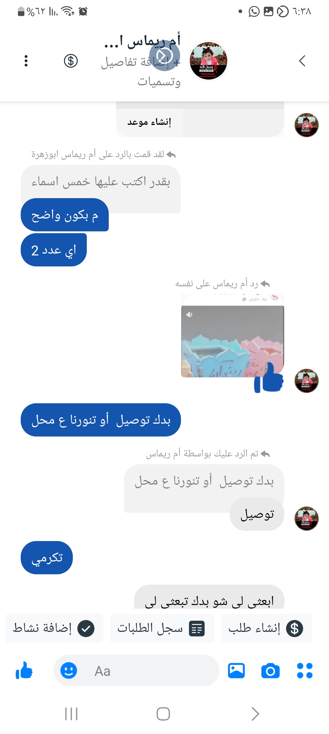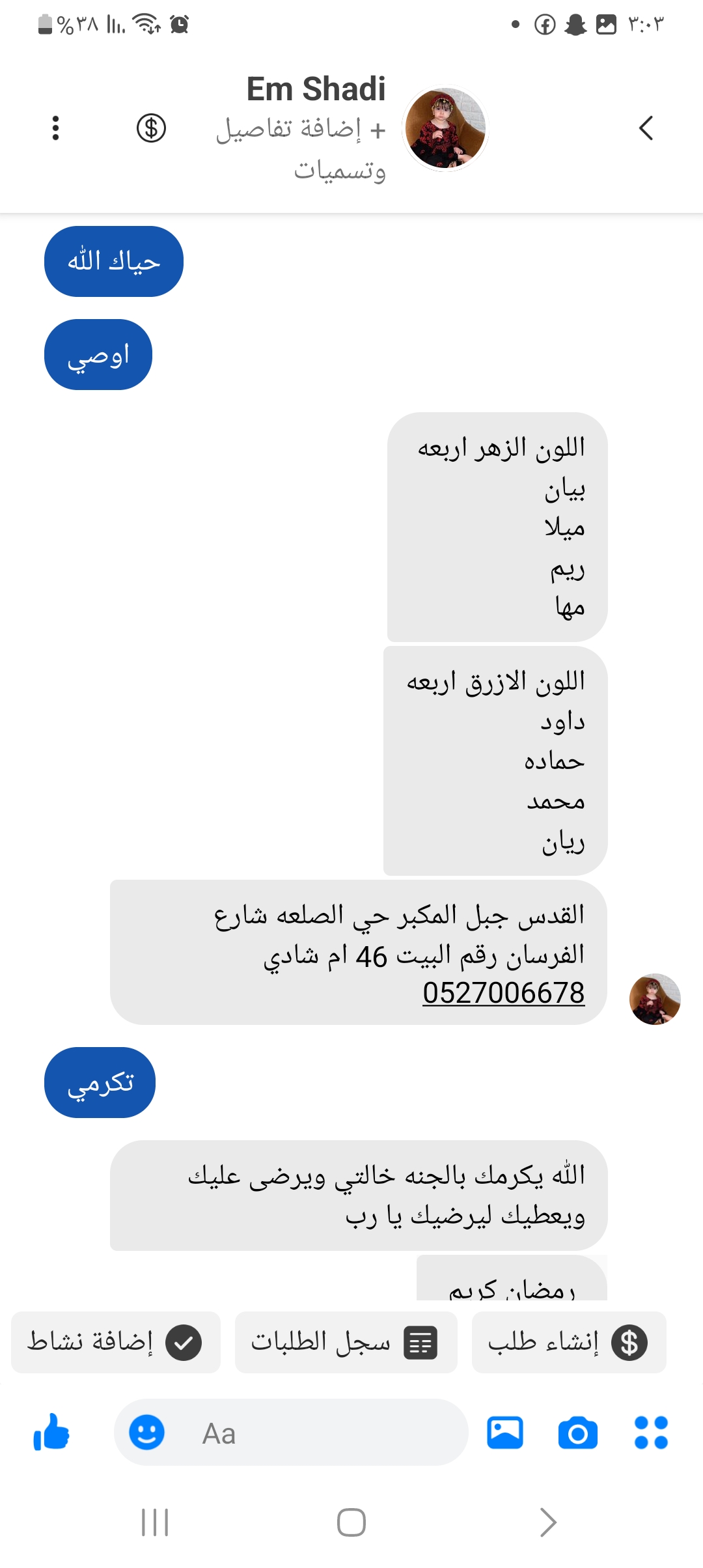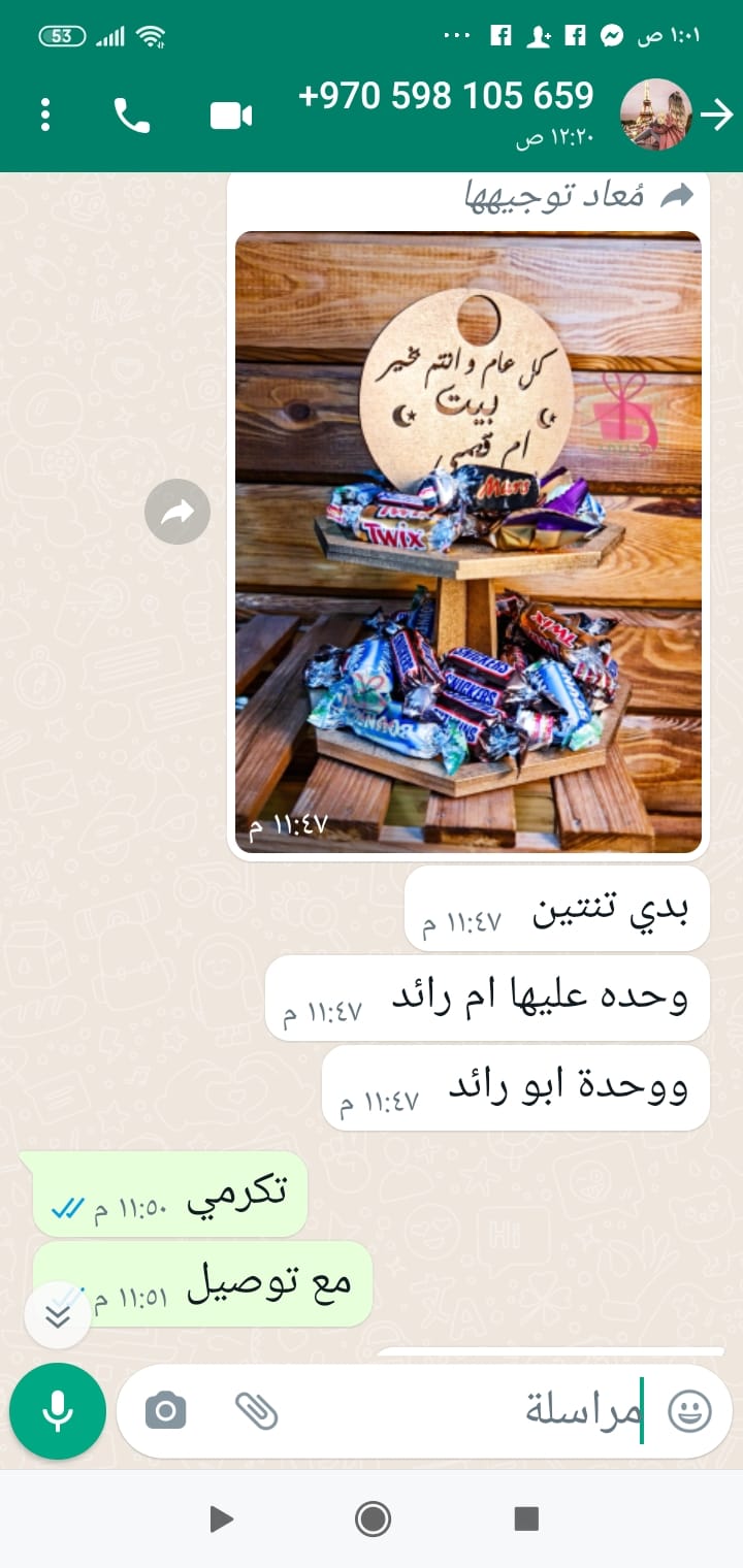ام كرم بكرا بدخلها توصيل بس اتاكد اذا بدها اضيف اشي او لا |
