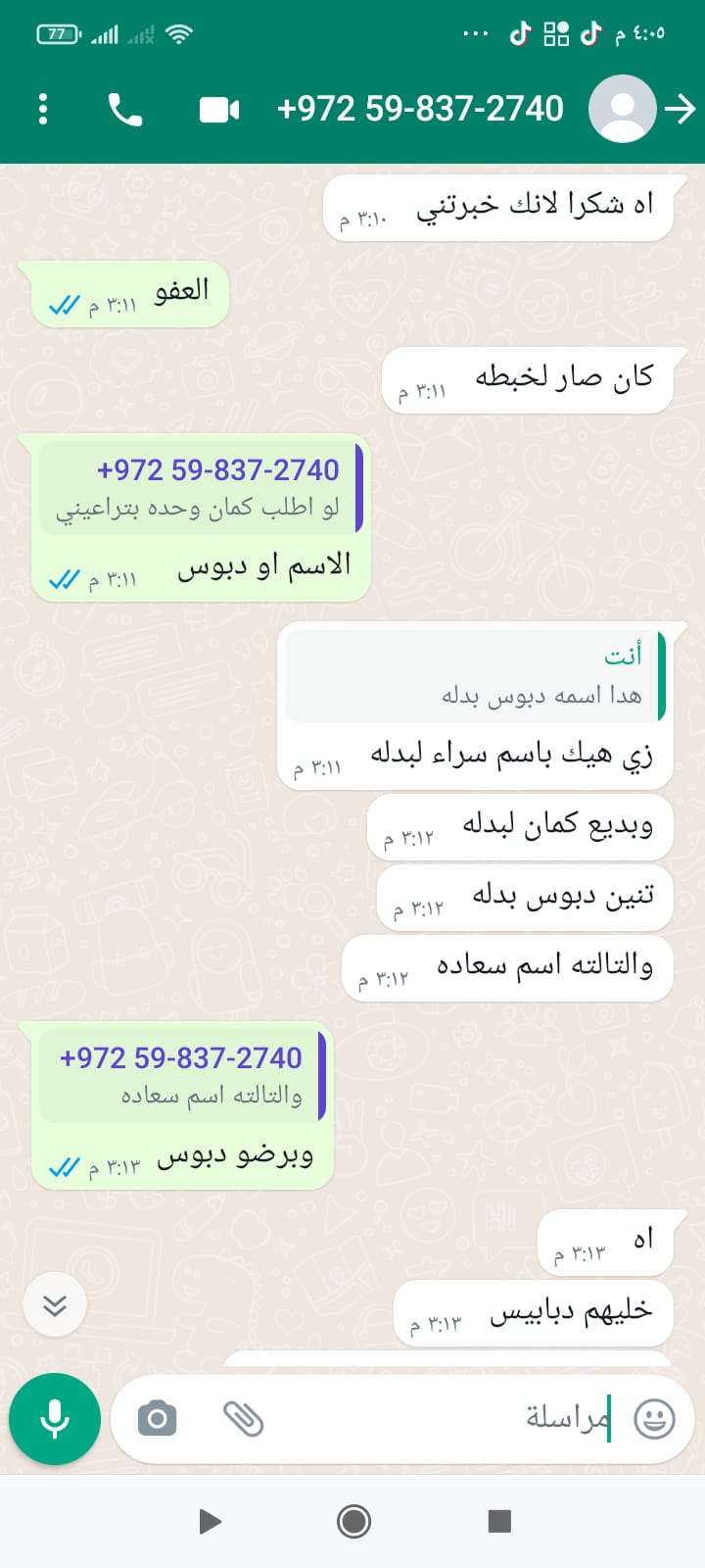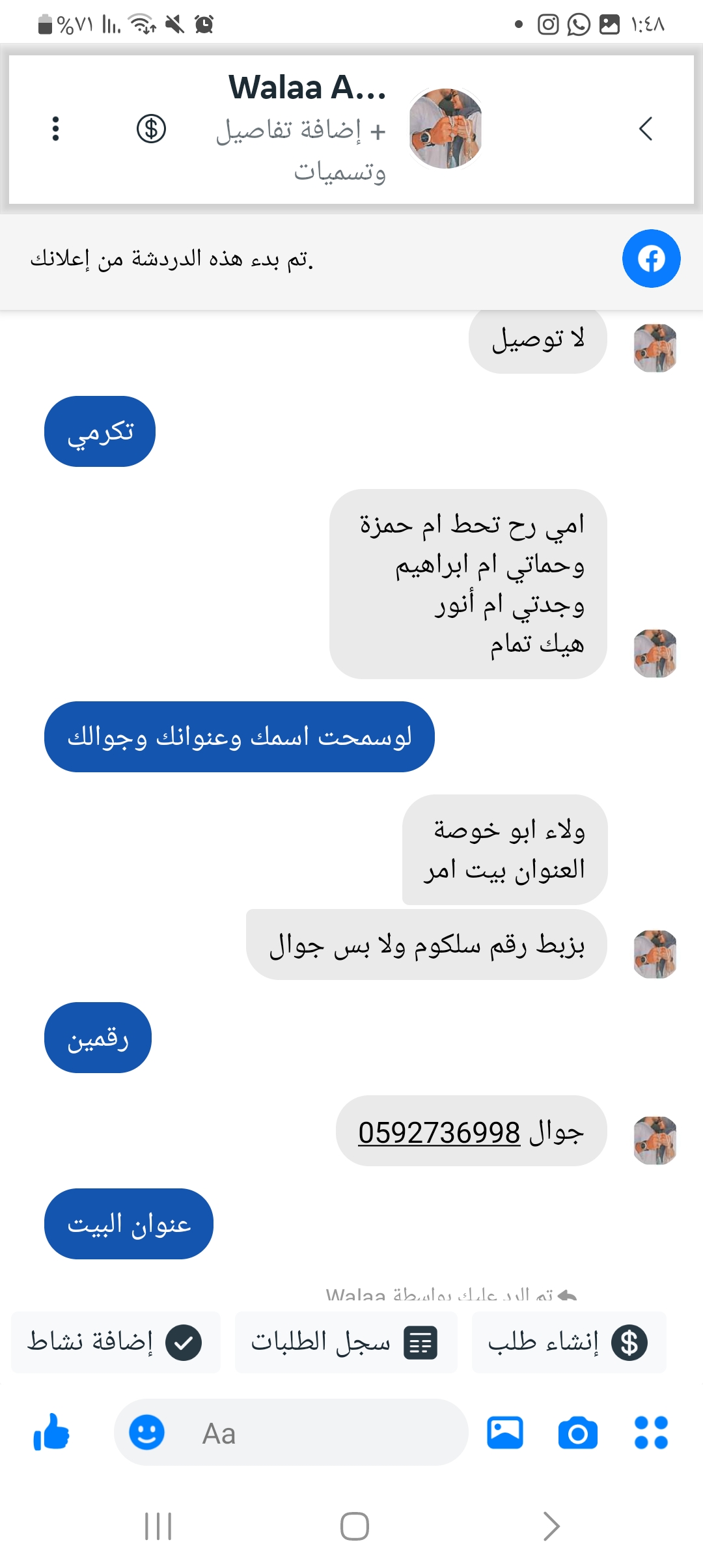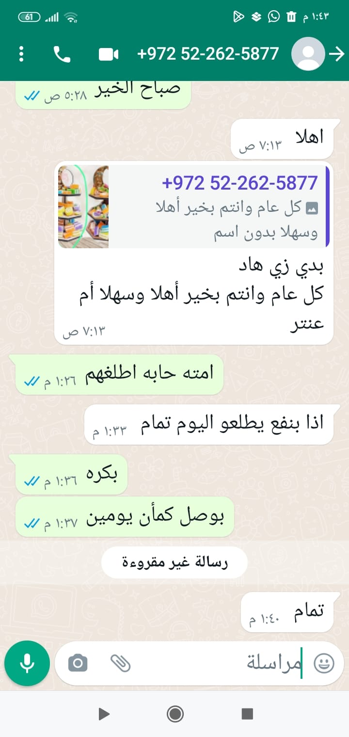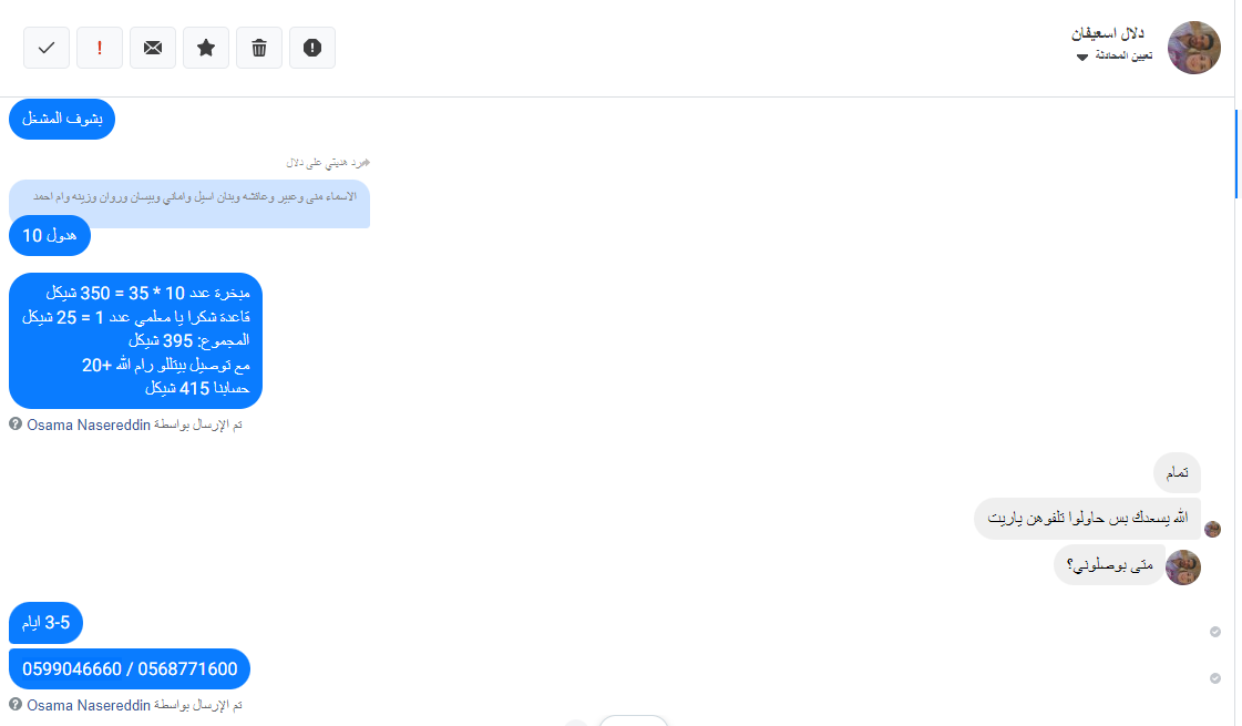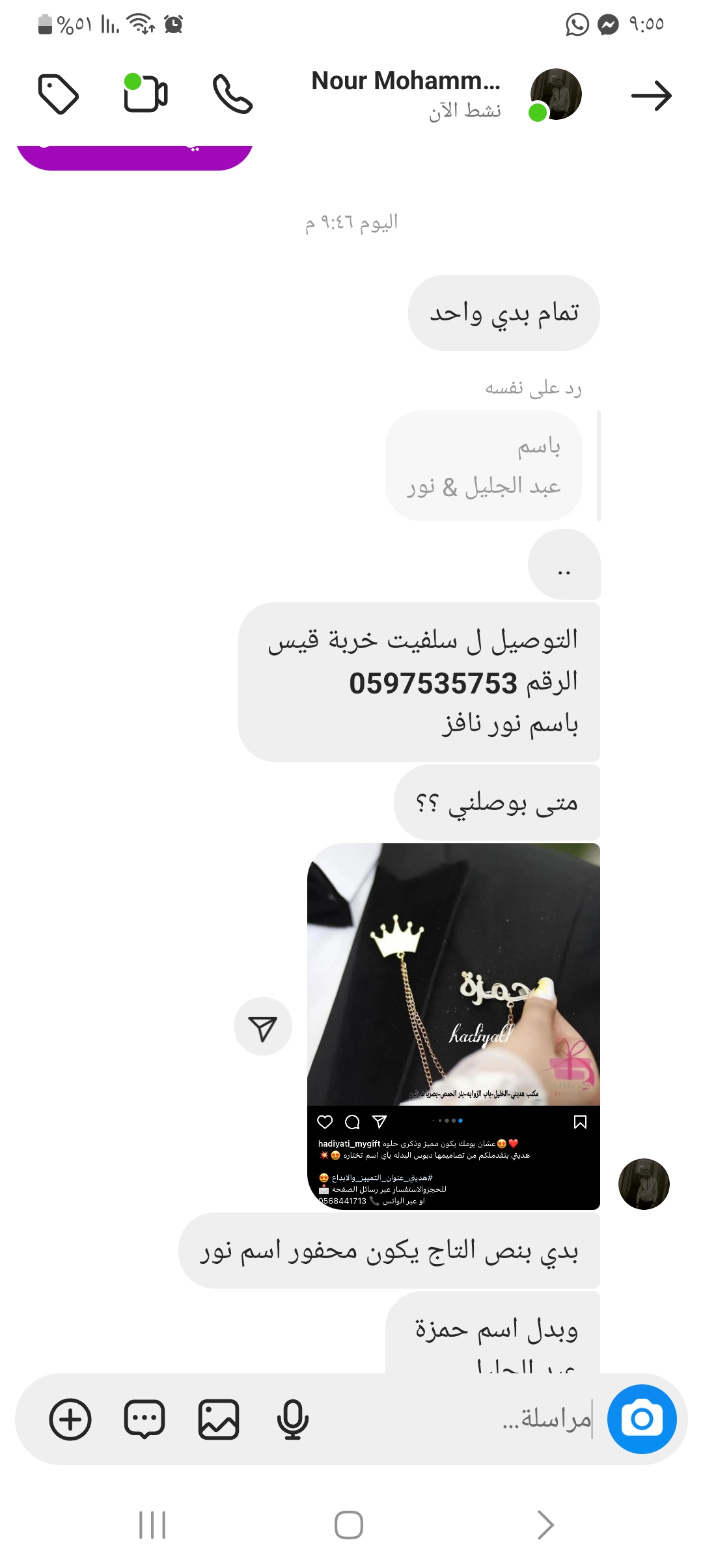 ام كرم بكرا بدخلها توصيل بس اتاكد اذا بدها اضيف اشي او لا |