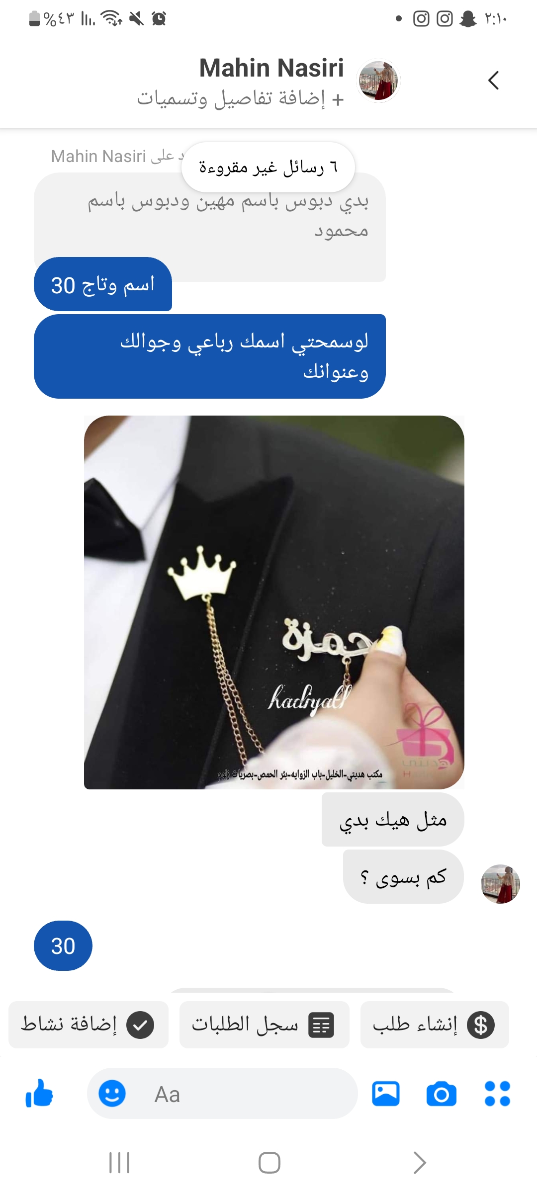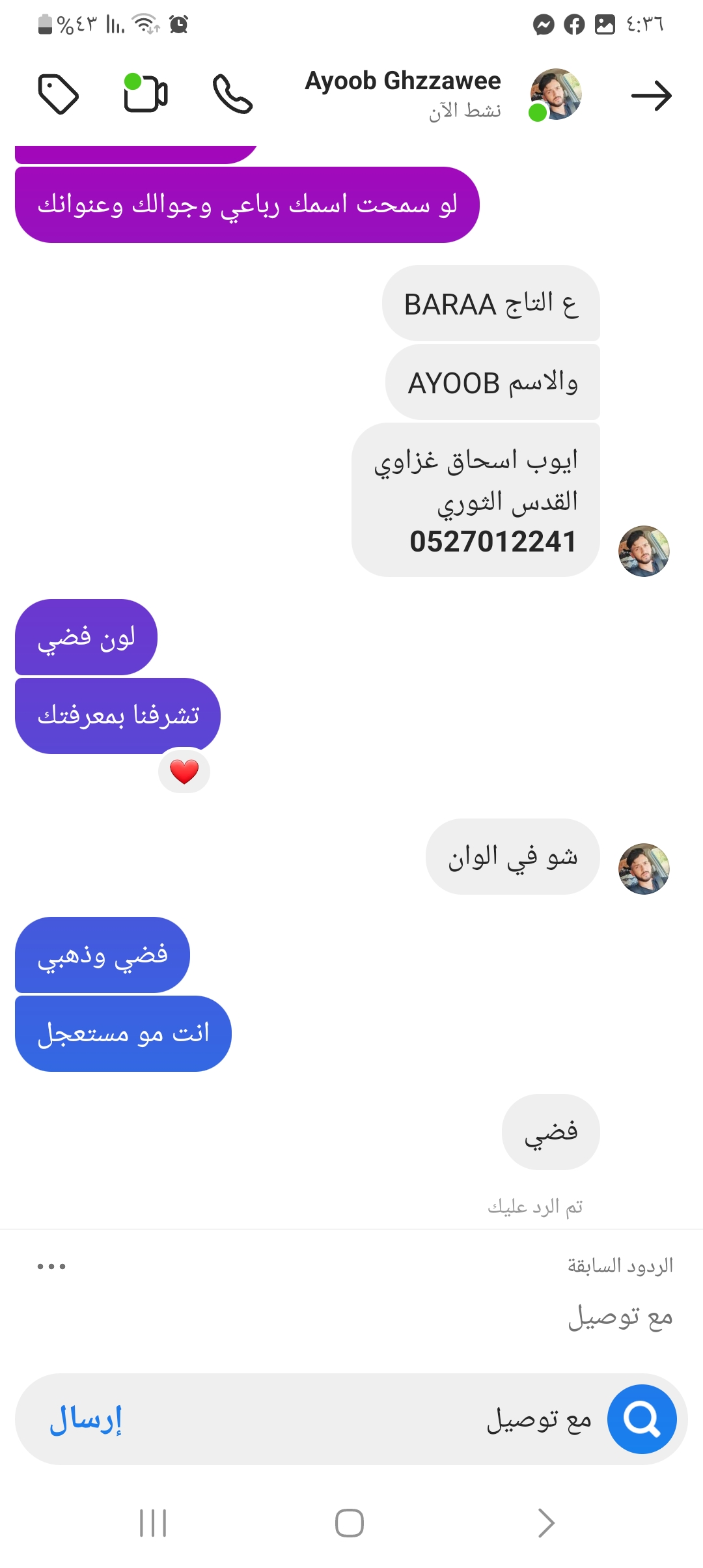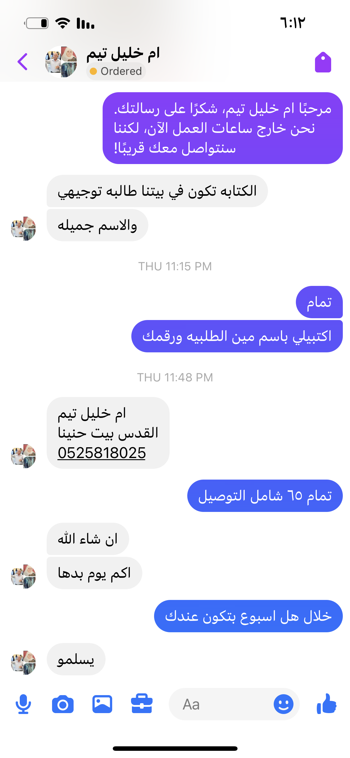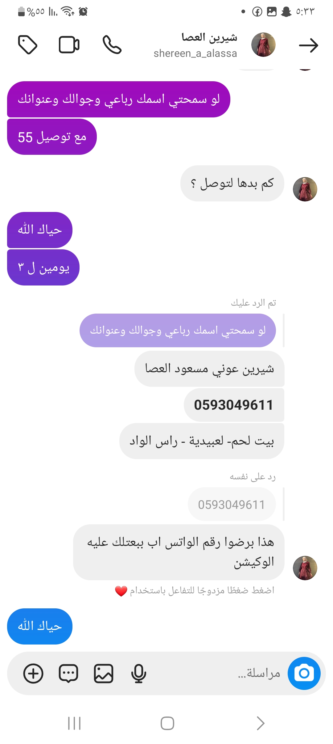 ام كرم بكرا بدخلها توصيل بس اتاكد اذا بدها اضيف اشي او لا |