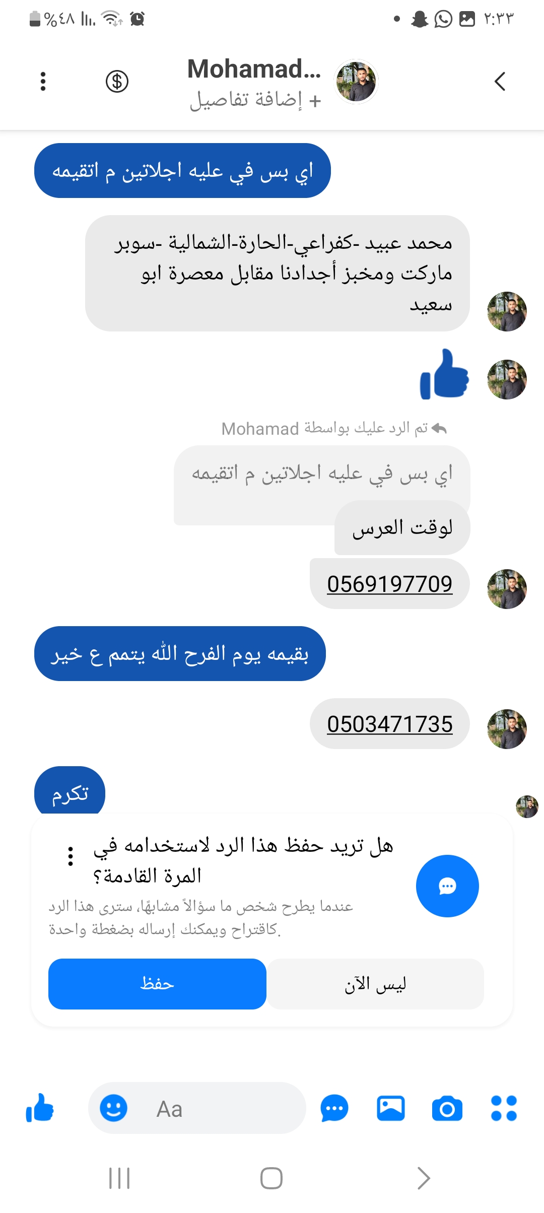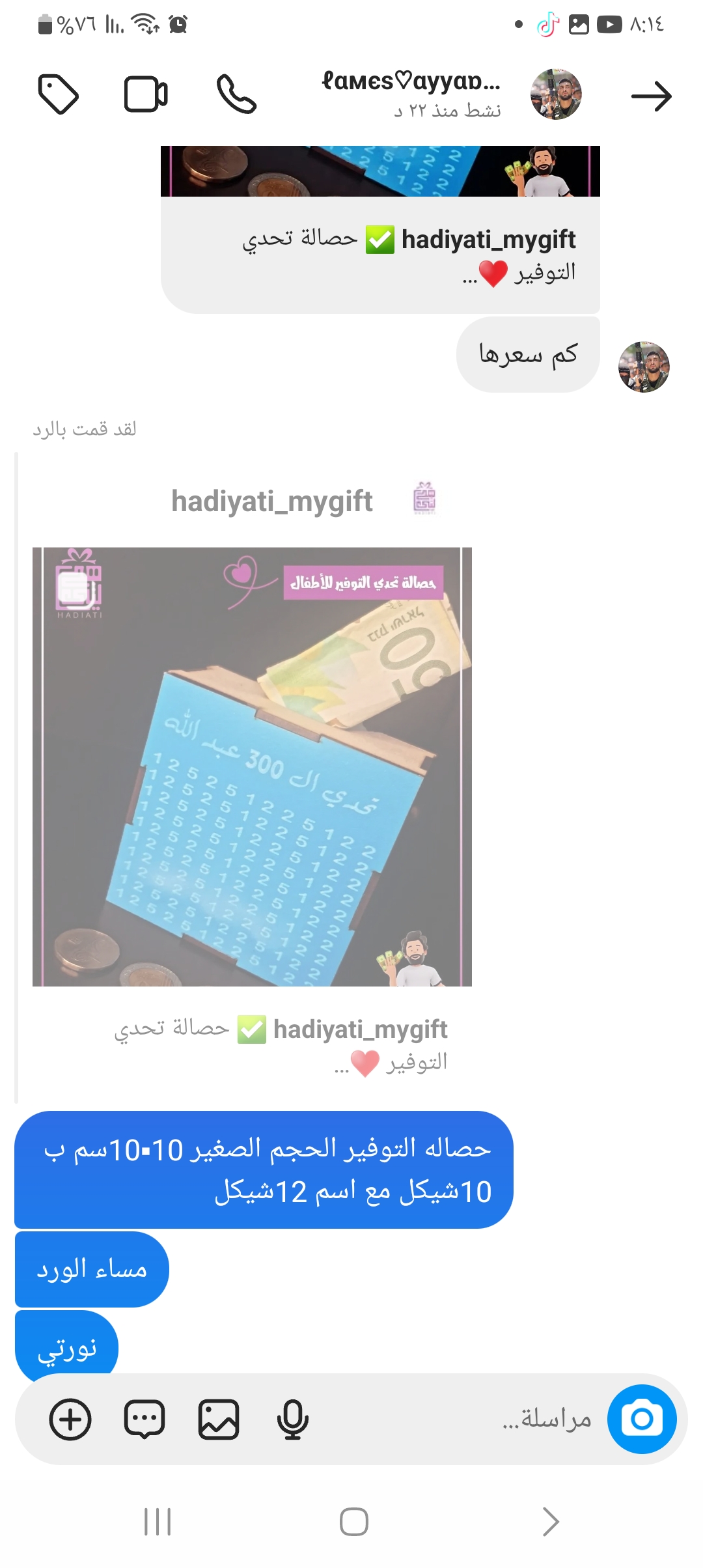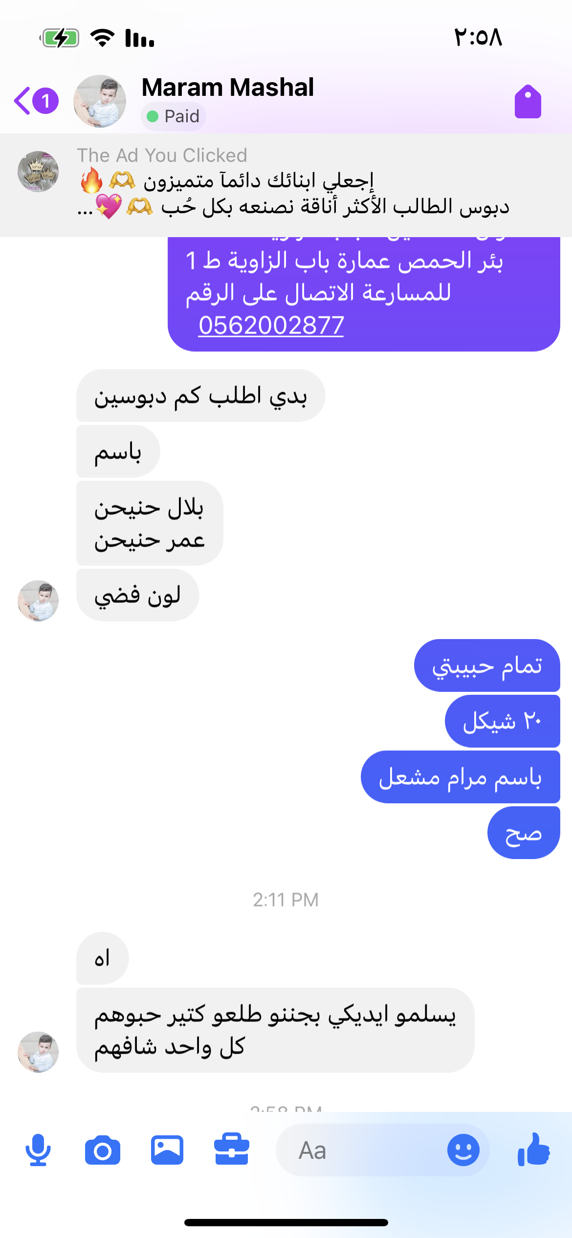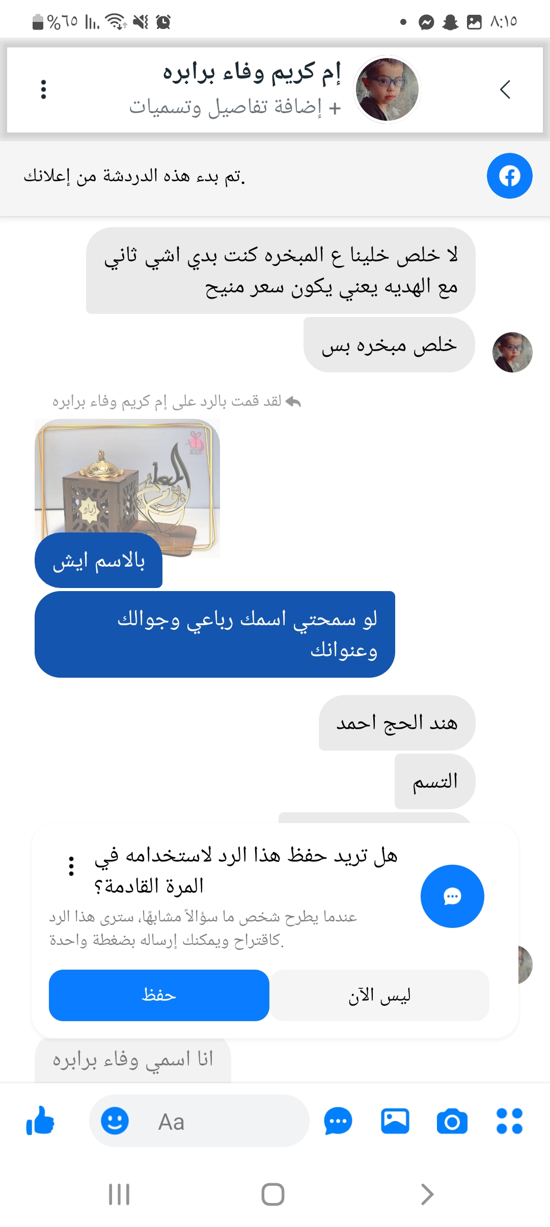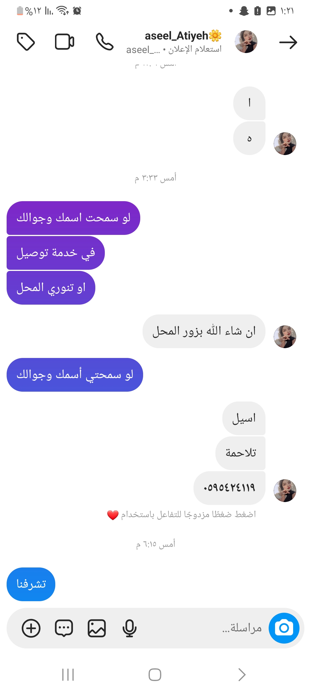 ام كرم بكرا بدخلها توصيل بس اتاكد اذا بدها اضيف اشي او لا |