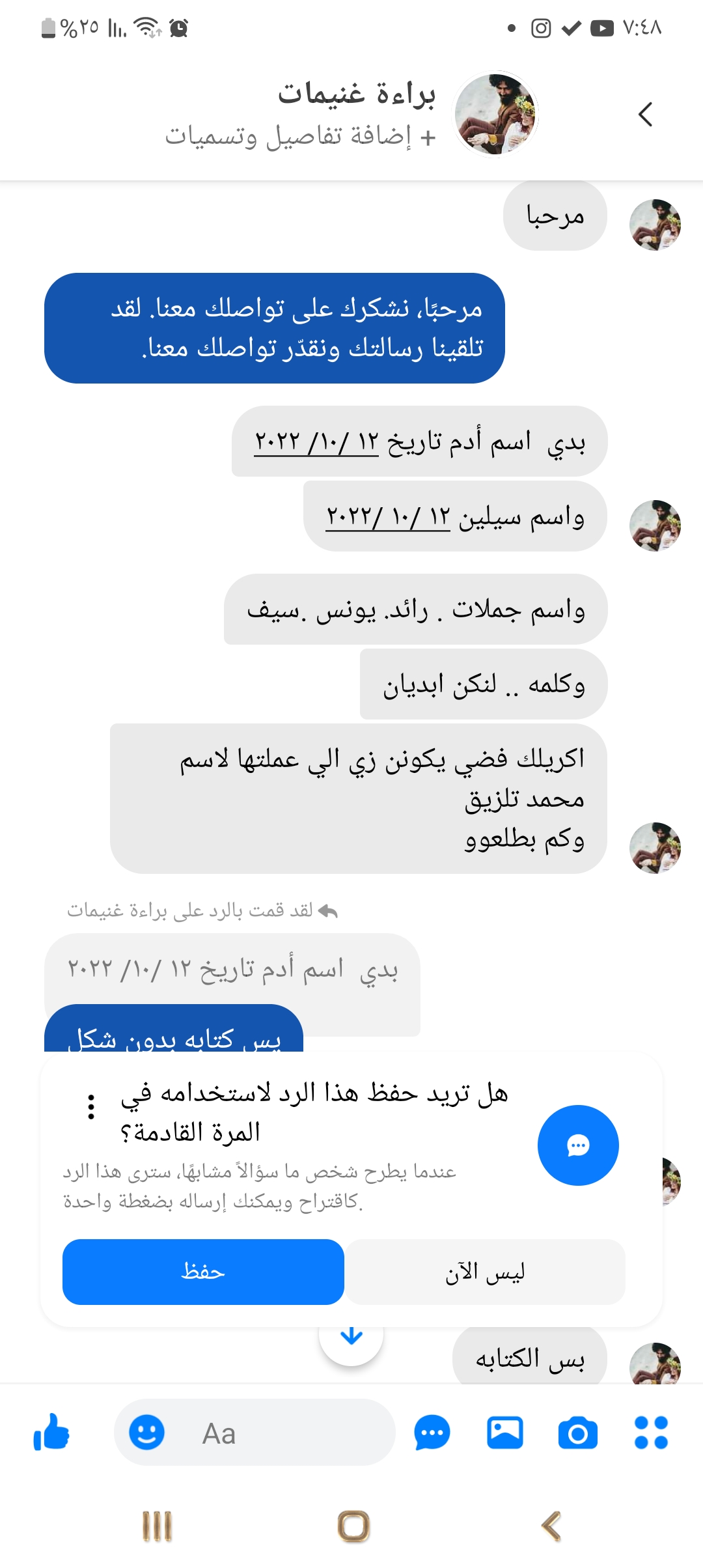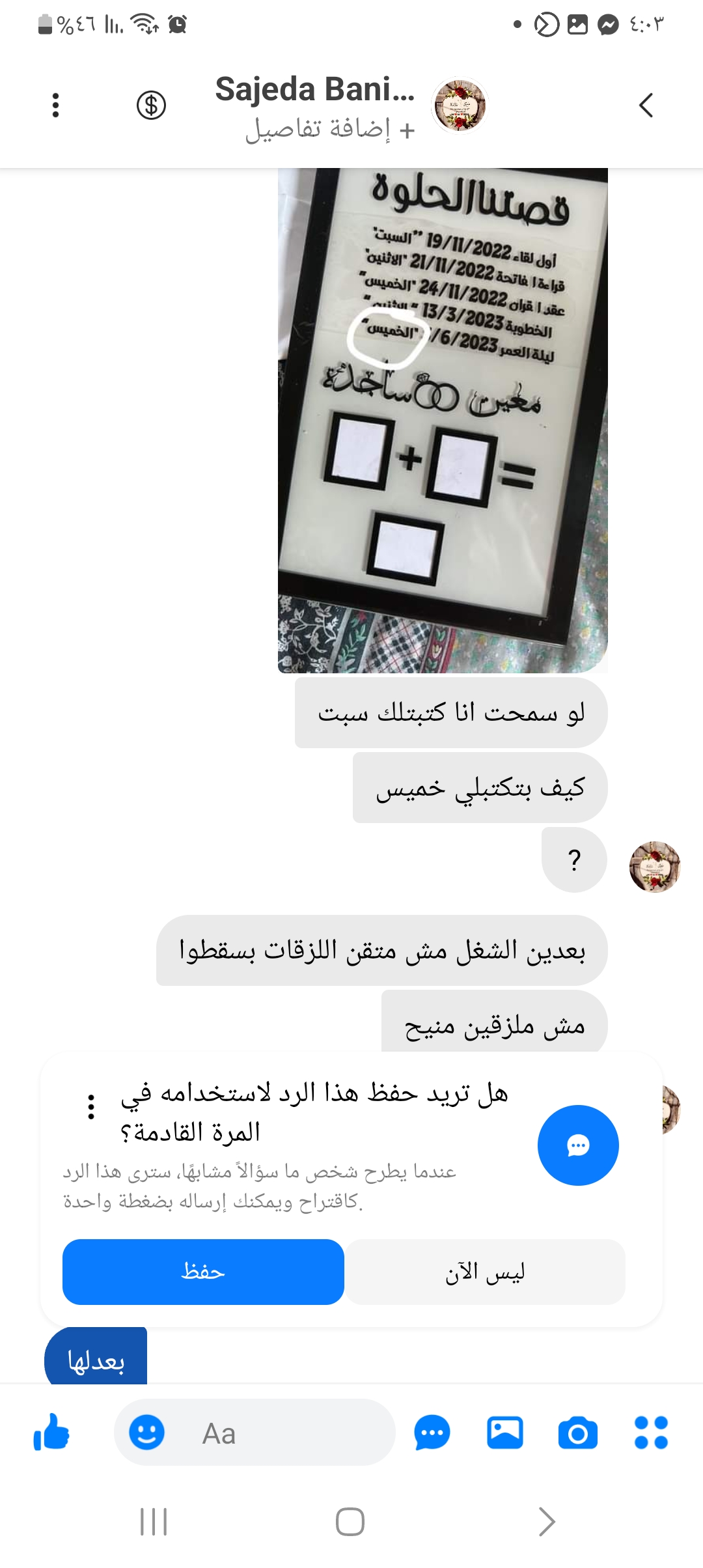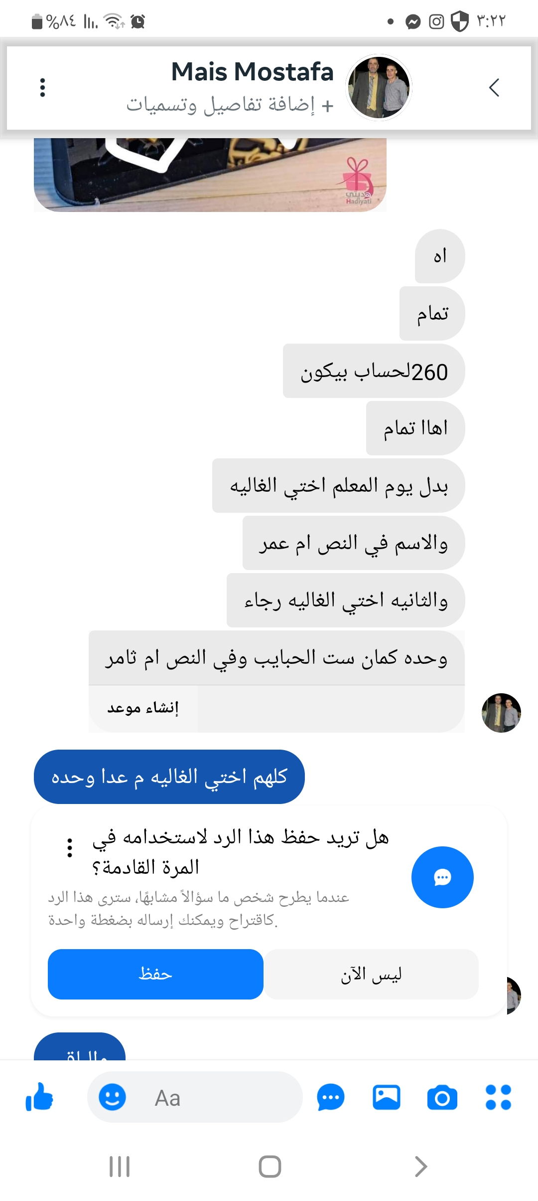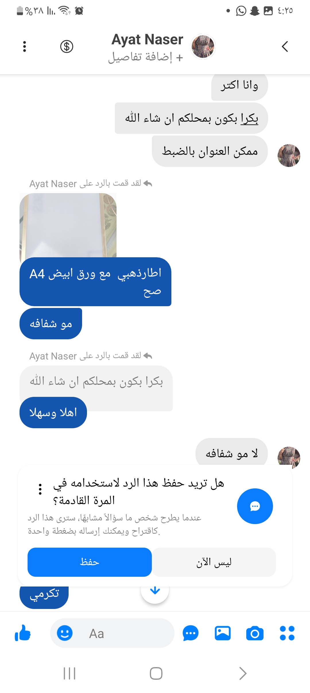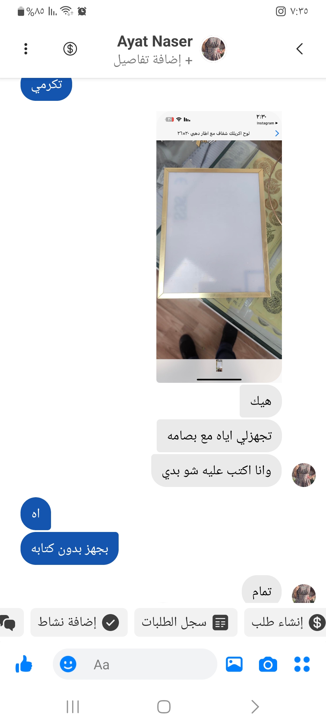 رشا ضروري تجهز العينة بكرا عشان نعتمدمع الزبونة |