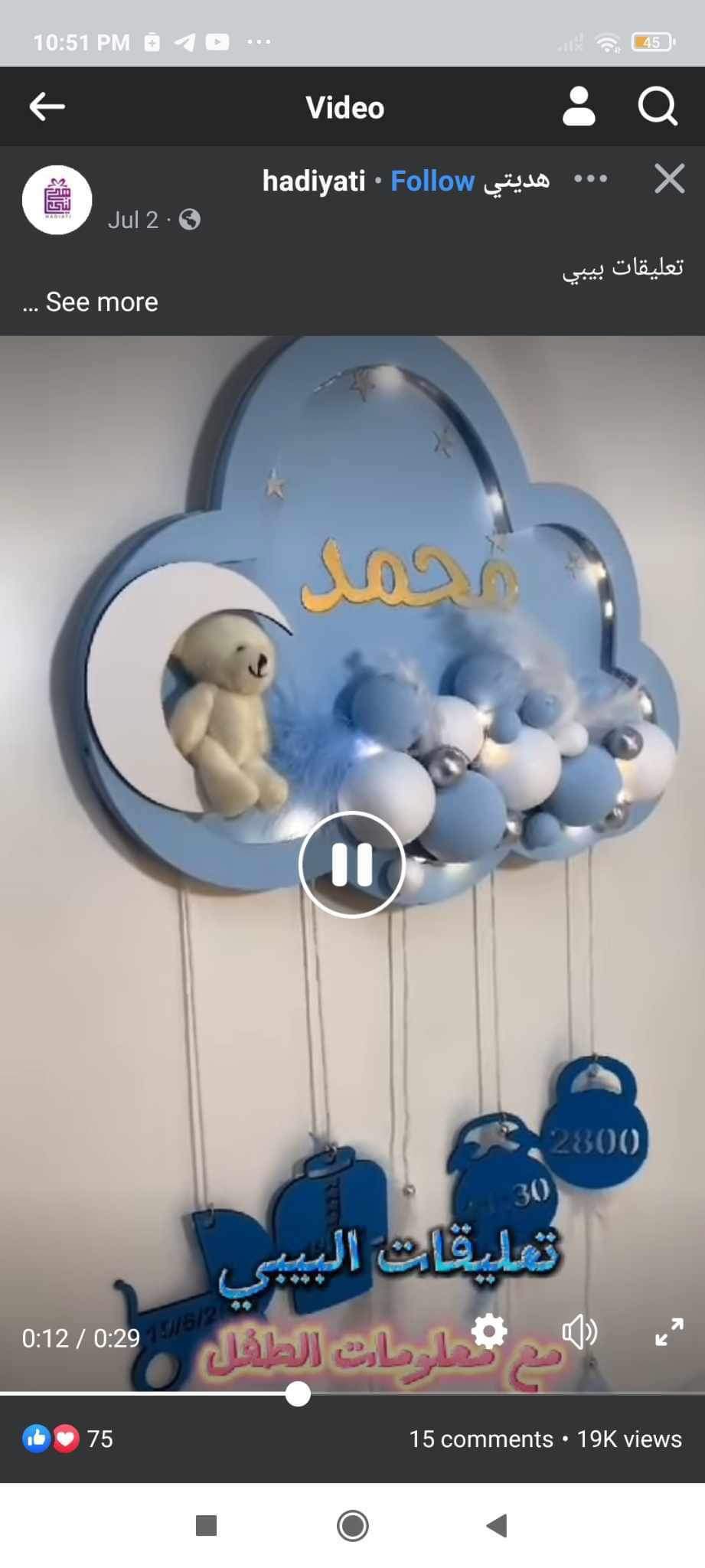 تعليقة غيمه ازرق مع معلومات الطفل…..