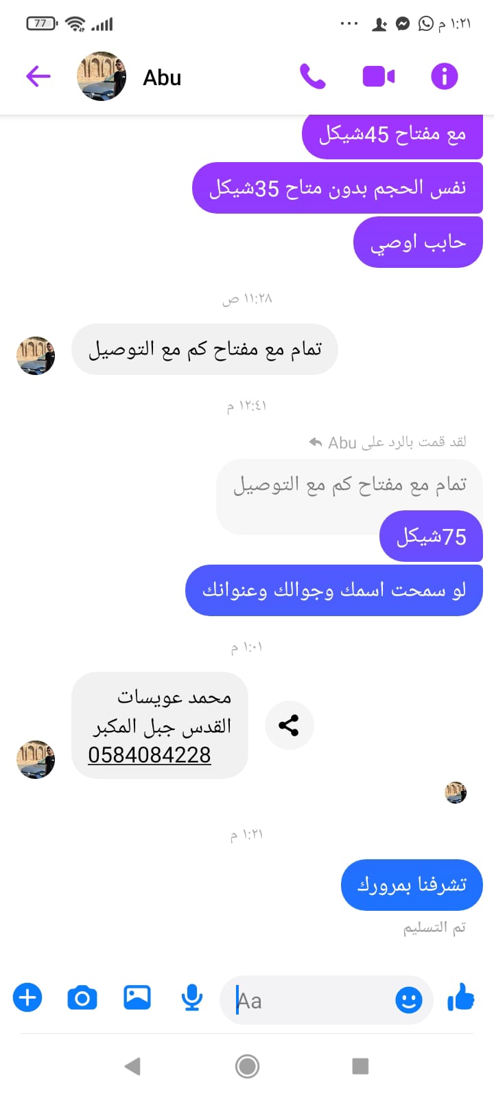 | السعر المبيوع | 75 شيكل |