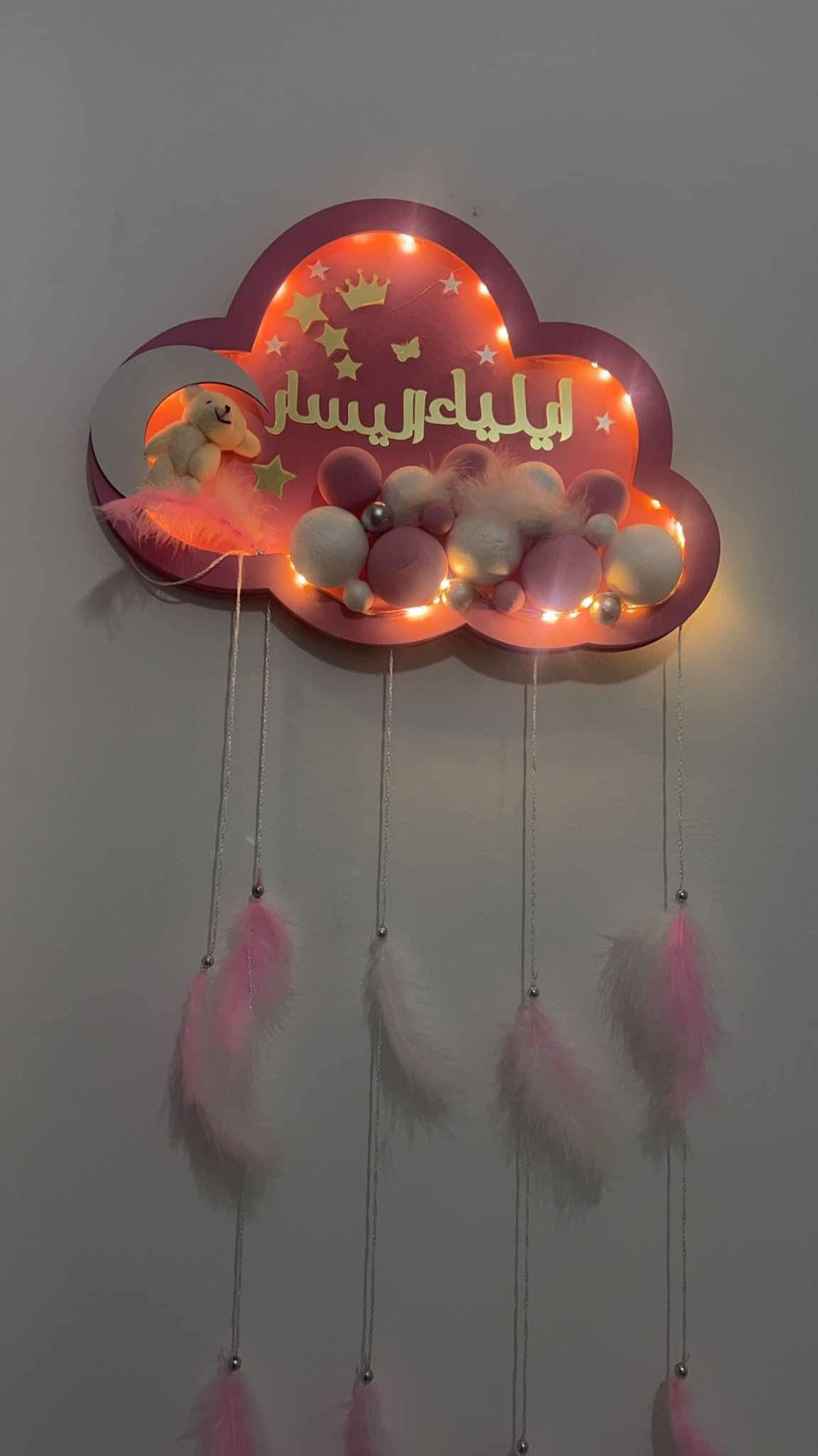 تعليقه غيمه لون زهري الاسم نبيله لون الاسم فضي مع الاشكال