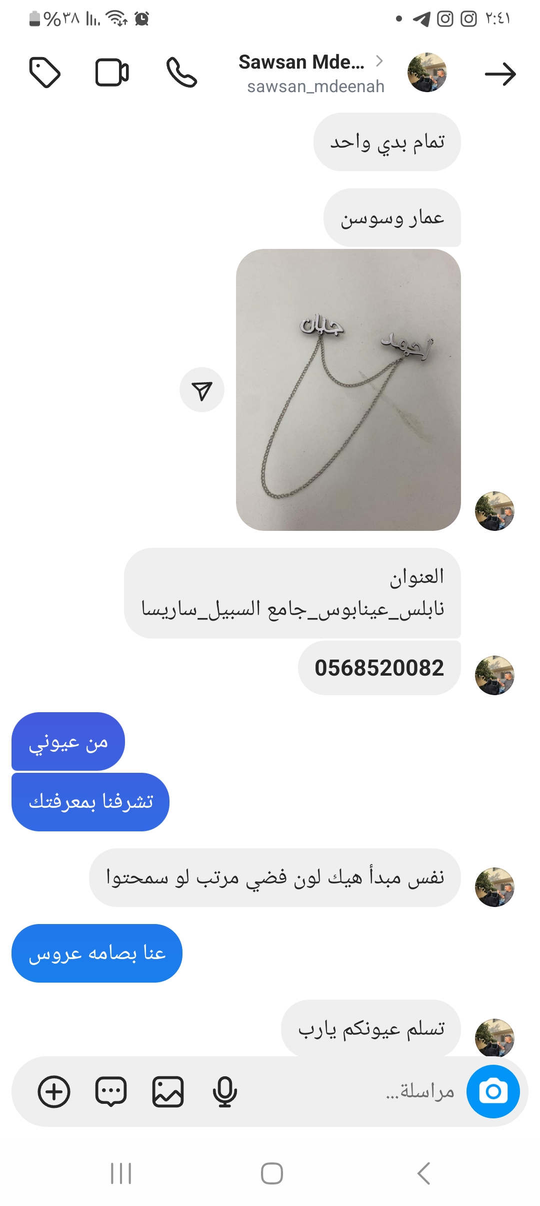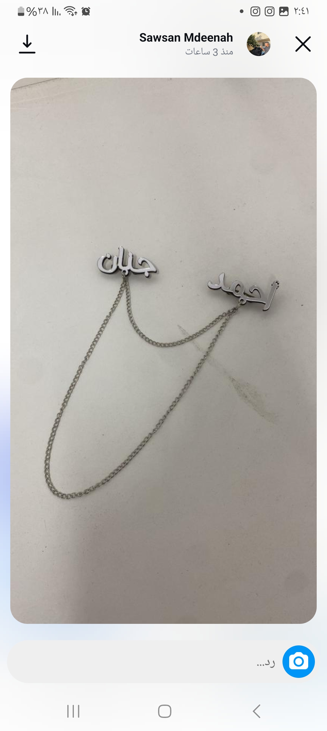 بروش بدله مكتوب عليها عمار وسوسن لون فضي ولغه عربيه