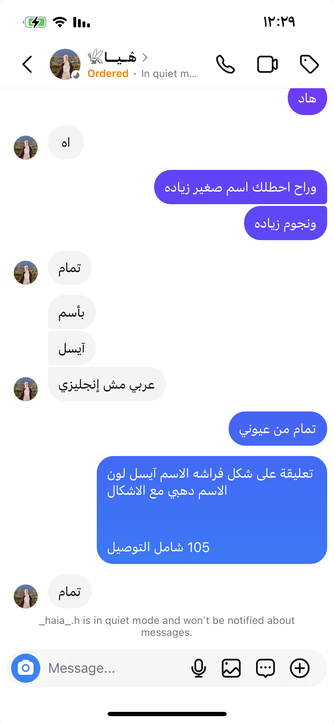 تعليقة على شكل فراشه الاسم آيسل لون الاسم دهبي مع الاشكال