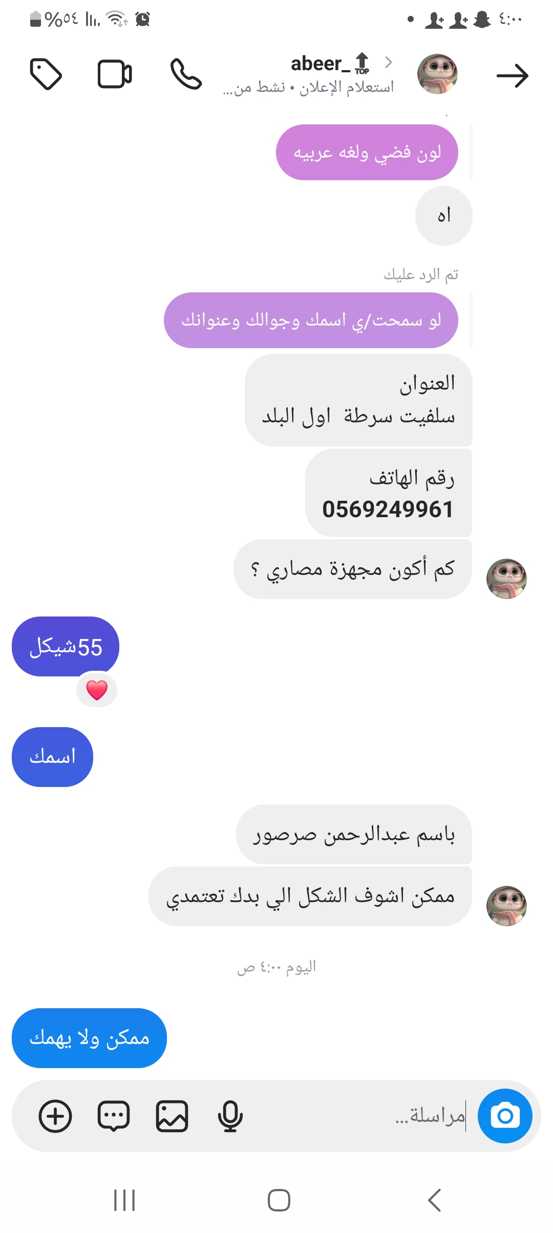 | السعر المبيوع | 55 شيكل |