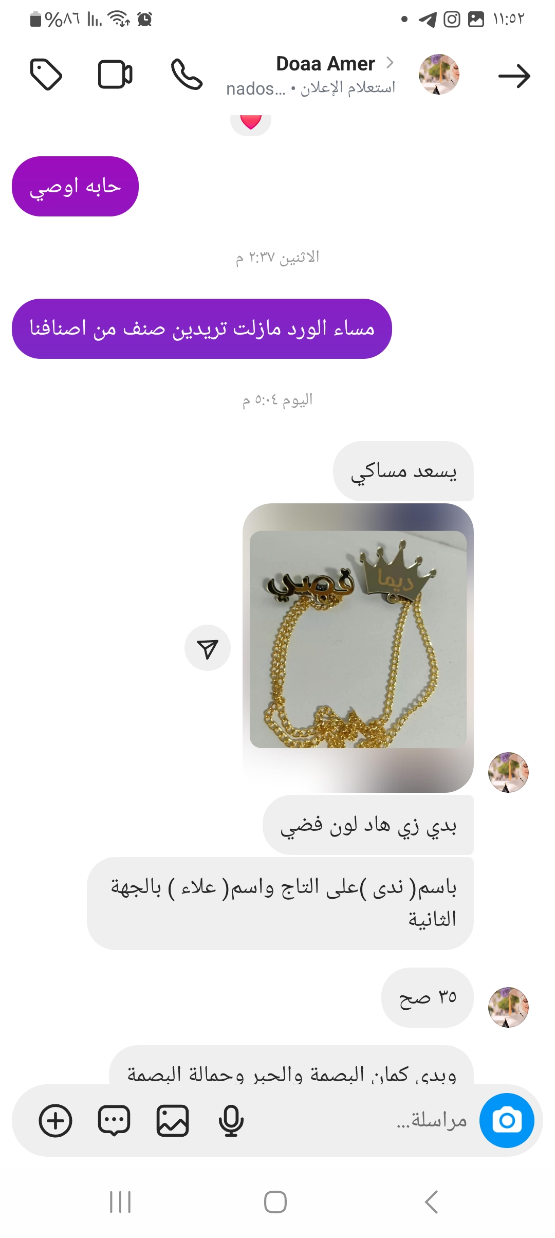 بروش بدله باسم( ندى )على التاج واسم( علاء ) بالجهة الثانيةلون فضي لغه عربيه مزخرفه