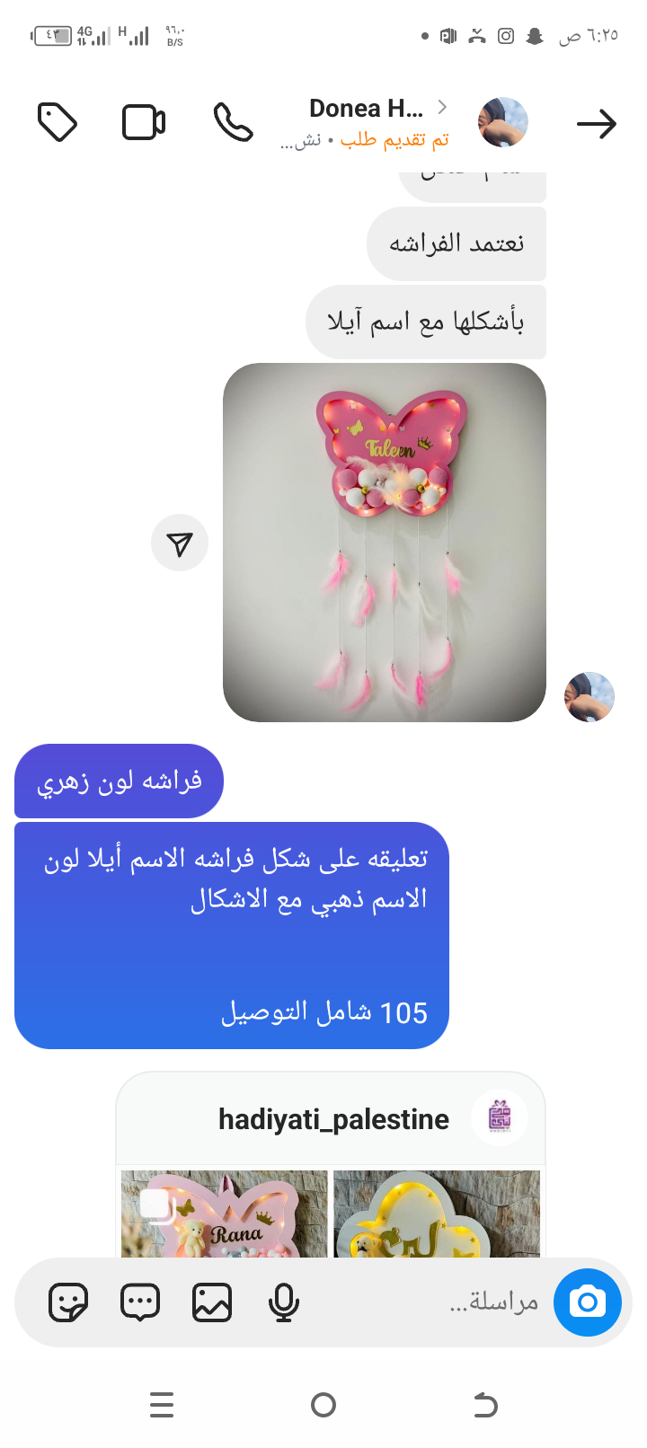 تعليقه على شكل فراشه الاسم أيلا لون الاسم ذهبي مع الاشكال