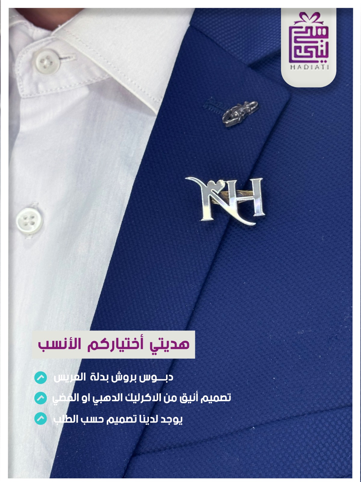دبوس للعريس لون فضي العريس حرف M والعروس حرف F