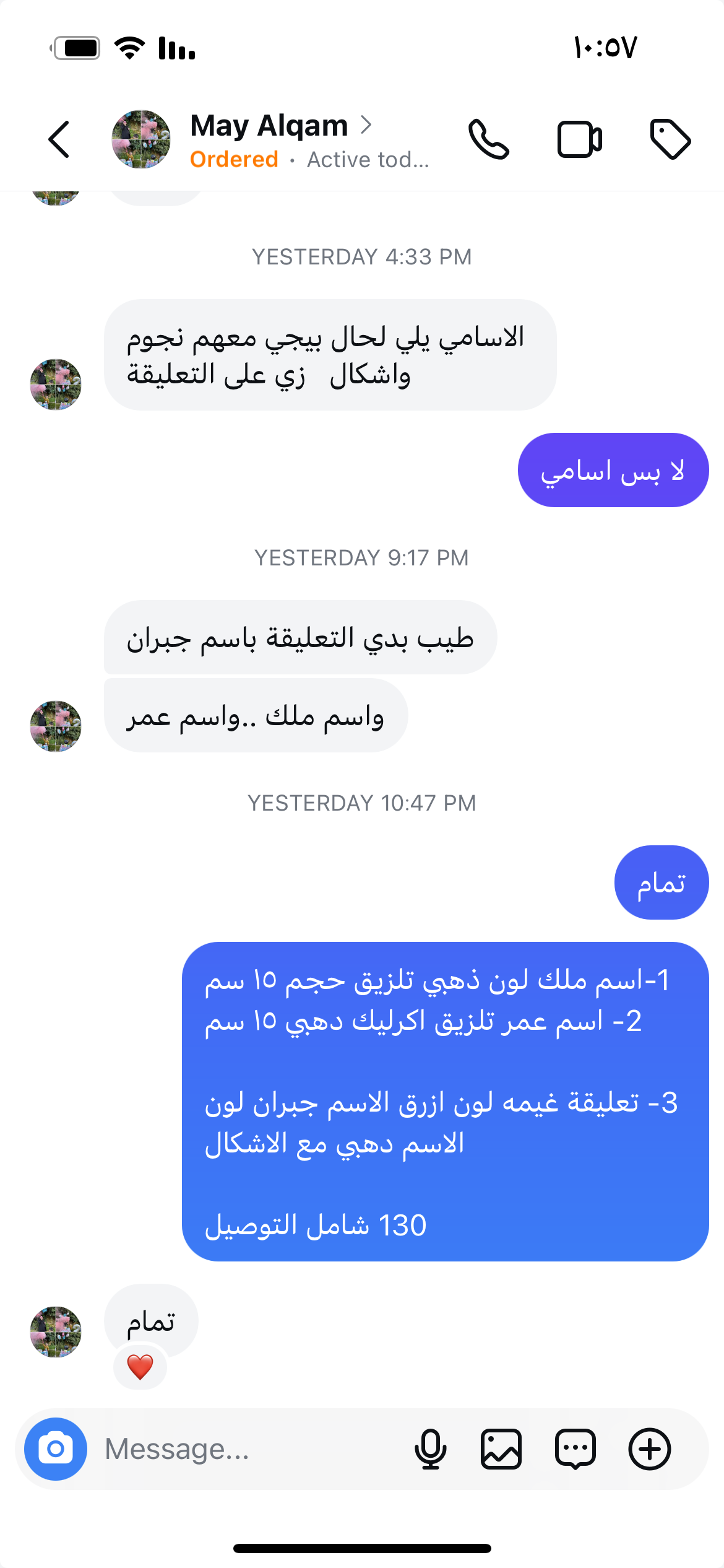 2- اسم عمر لحال تلزيق اكرليك دهبي حجم ١٥ سم …..