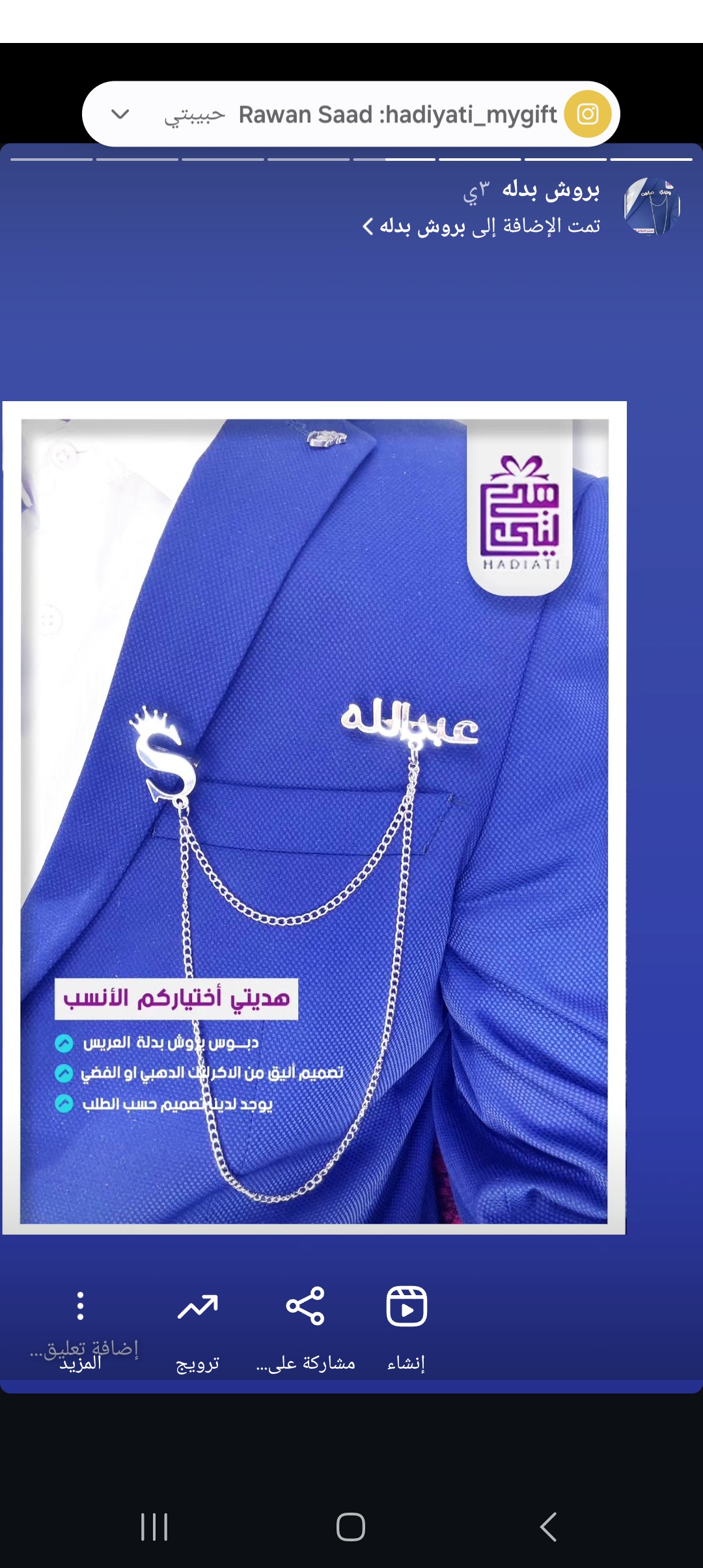 بروش بدله اسم الشب سامي وs,ع حرف تاج لون فضي في مسوه بروش بدله Rawan Sameer لون فضي ولغه عربيه في محل