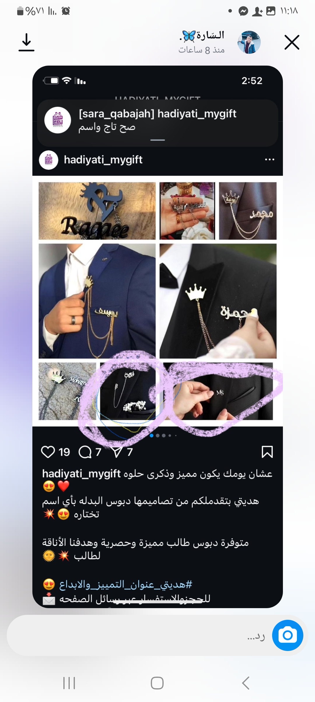 بروش بدله محمد و الحرف S لون فضي