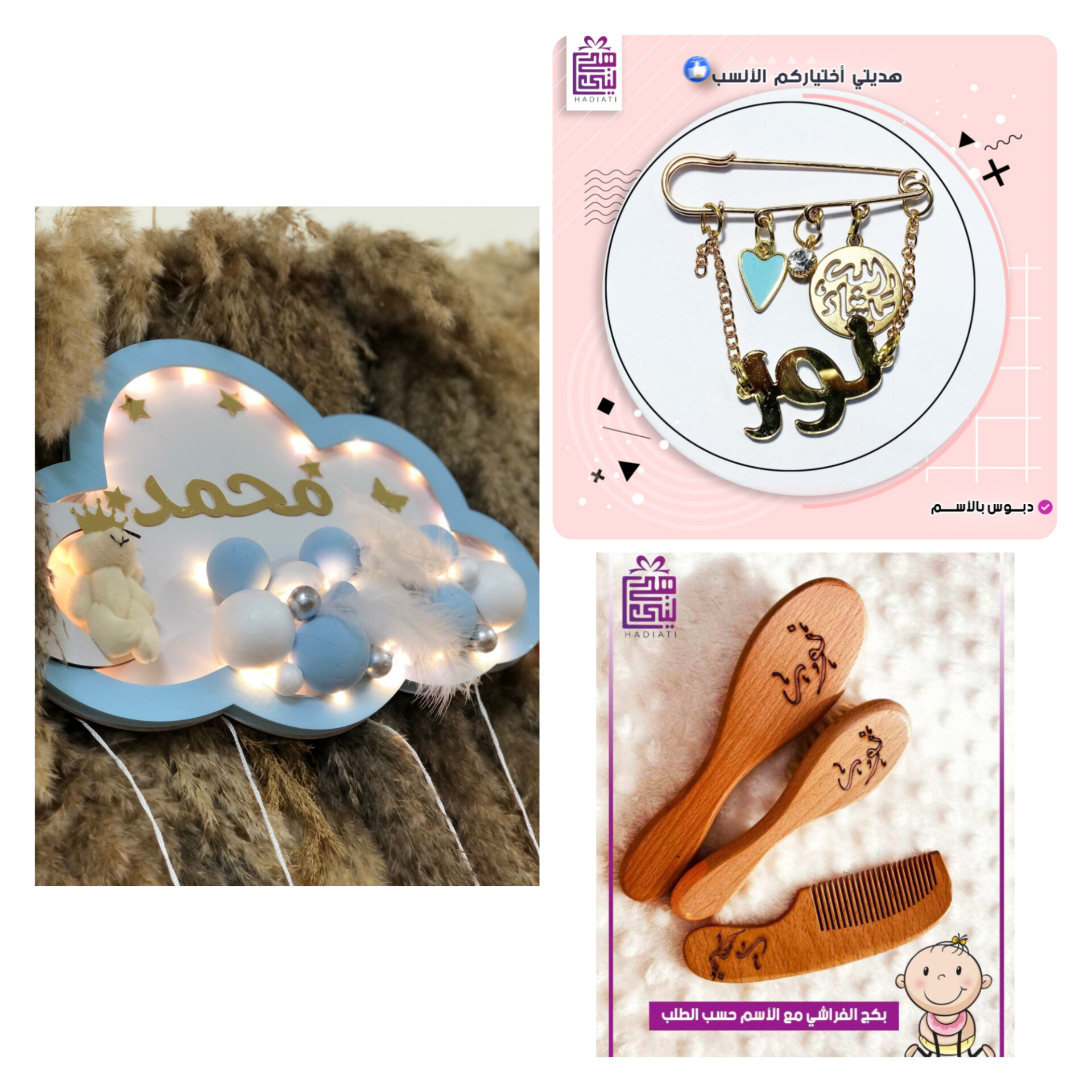 1-تعليقة( لون ابيض مع حواف ازرق ) الاسم معتصم بالعربي لون الاسم دهبي