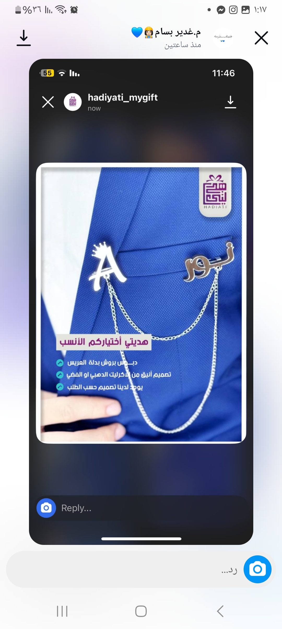 بروش بدله اسم ضياء وحرفGعليه تاج لون فضي