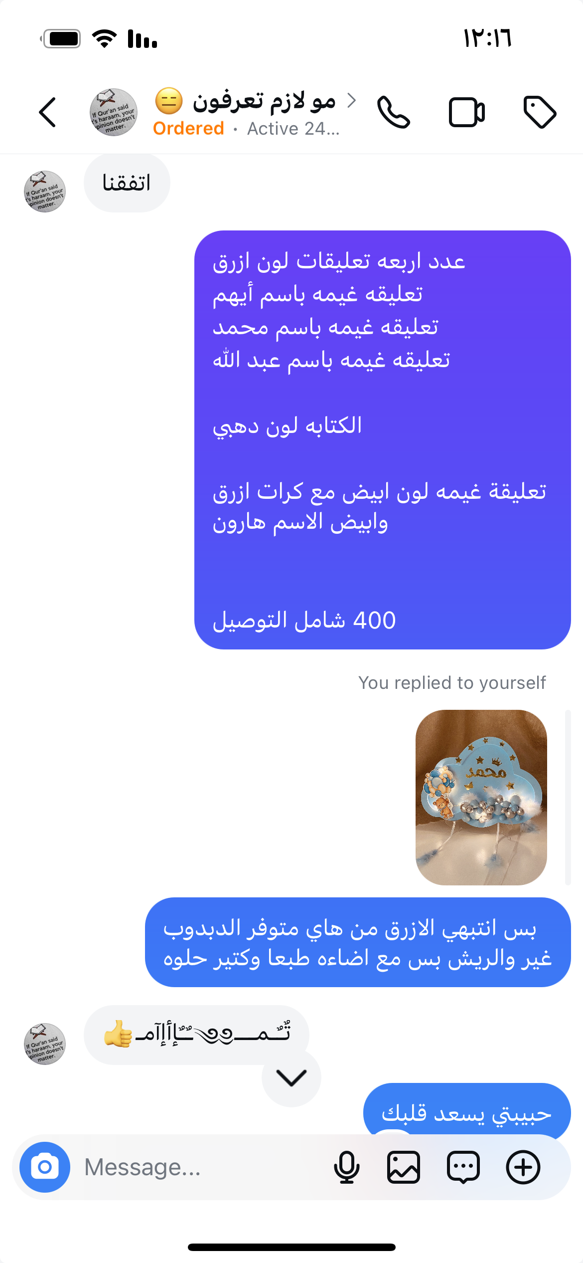 1- تعليقه غيمه باسم أيهم لون ازرق الاسم لون دهبي مع الاشكال ( غيمة رائف) ….