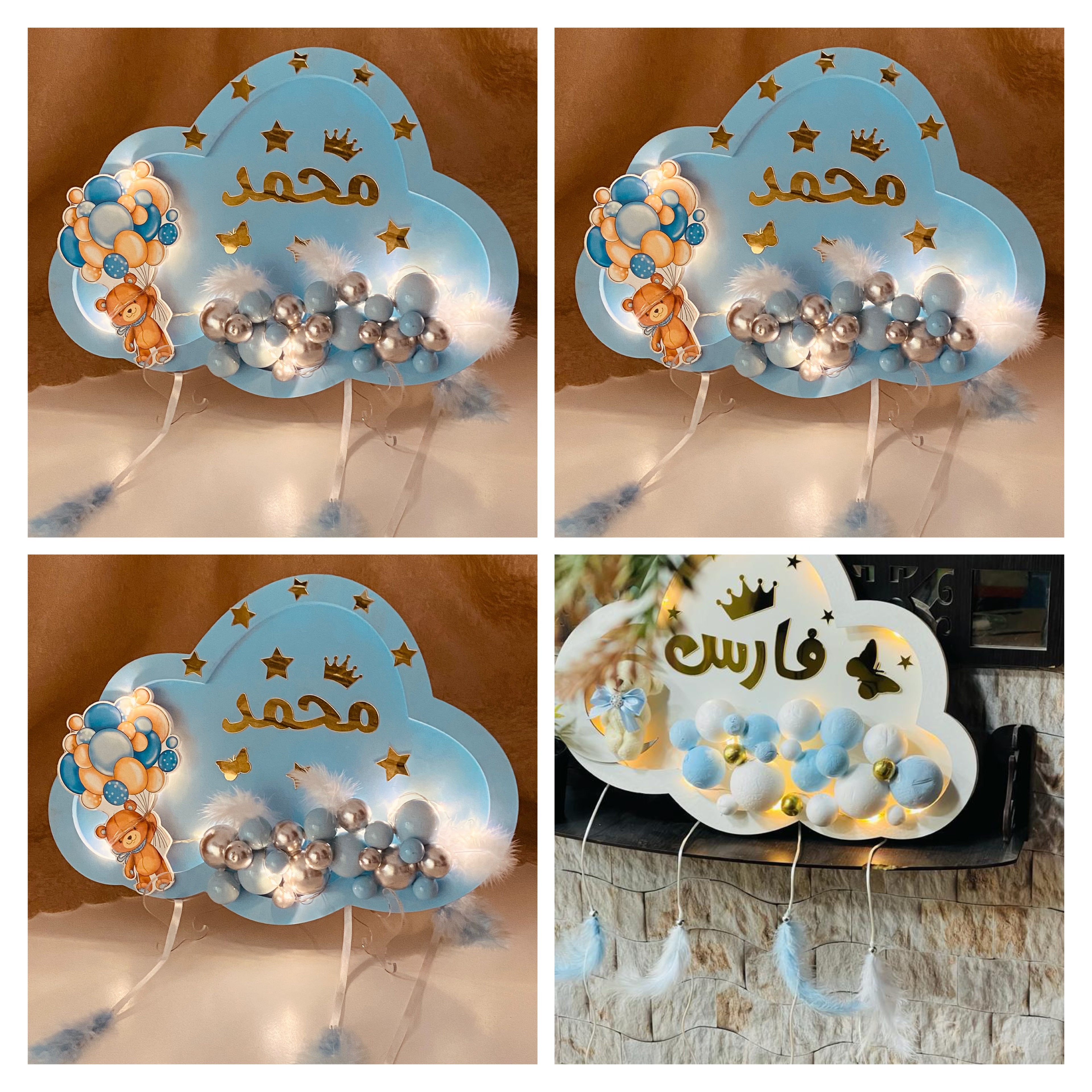 2- تعليقه غيمه باسم محمد لون ازرق الاسم دهبي مع الاشكال ( غيمة رائف) ….