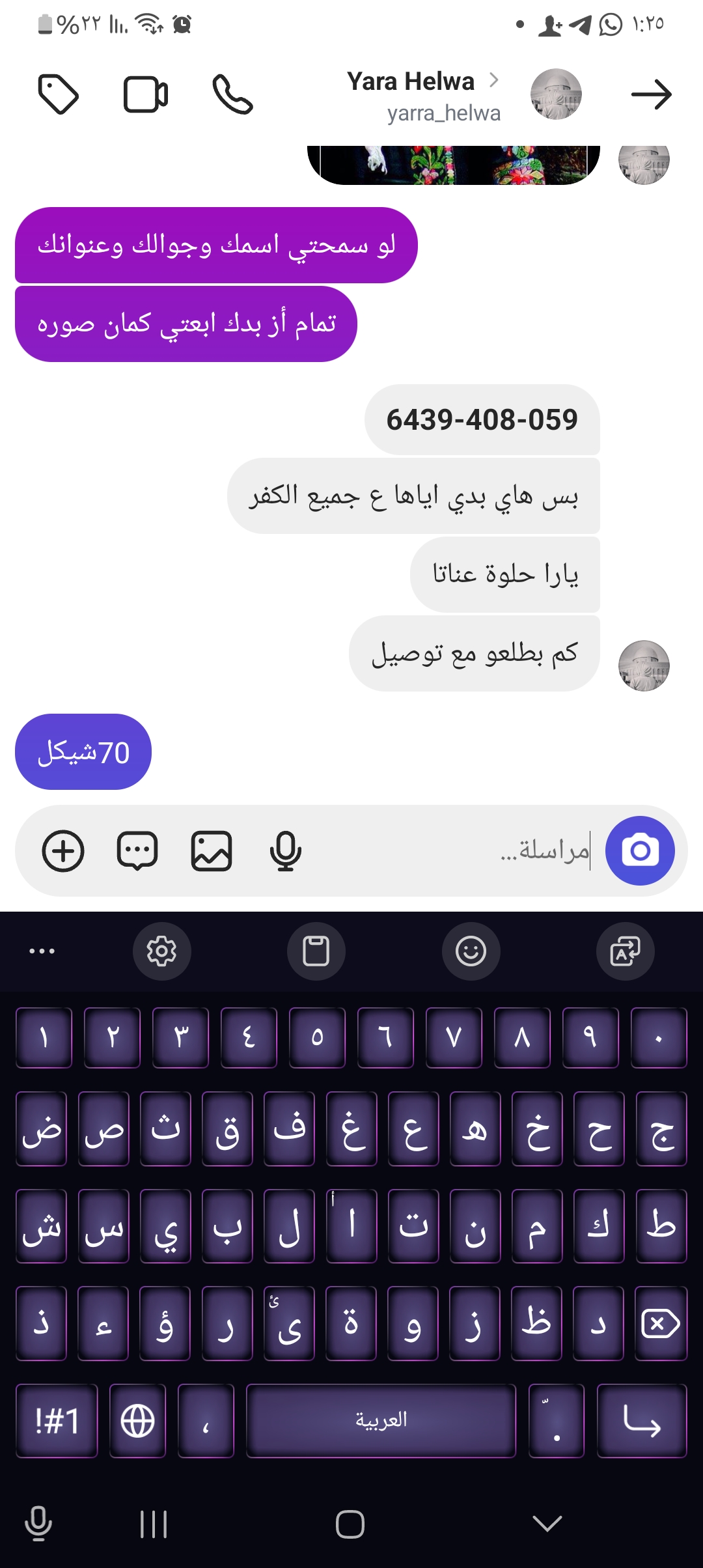 | السعر المبيوع | 70 شيكل |