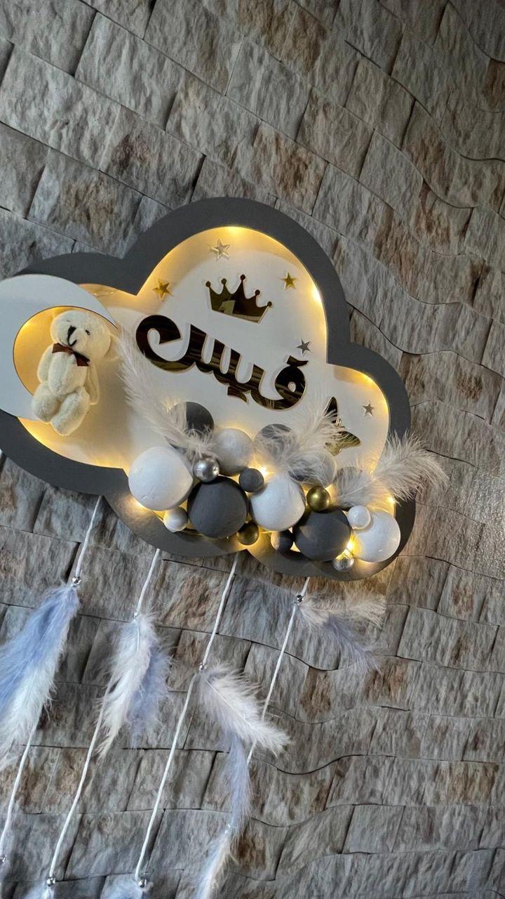 تعليقه غيمه لون ابيض والإطار سكني الاسم محمد & ميان لون الاسم دهبي مع الاشكال