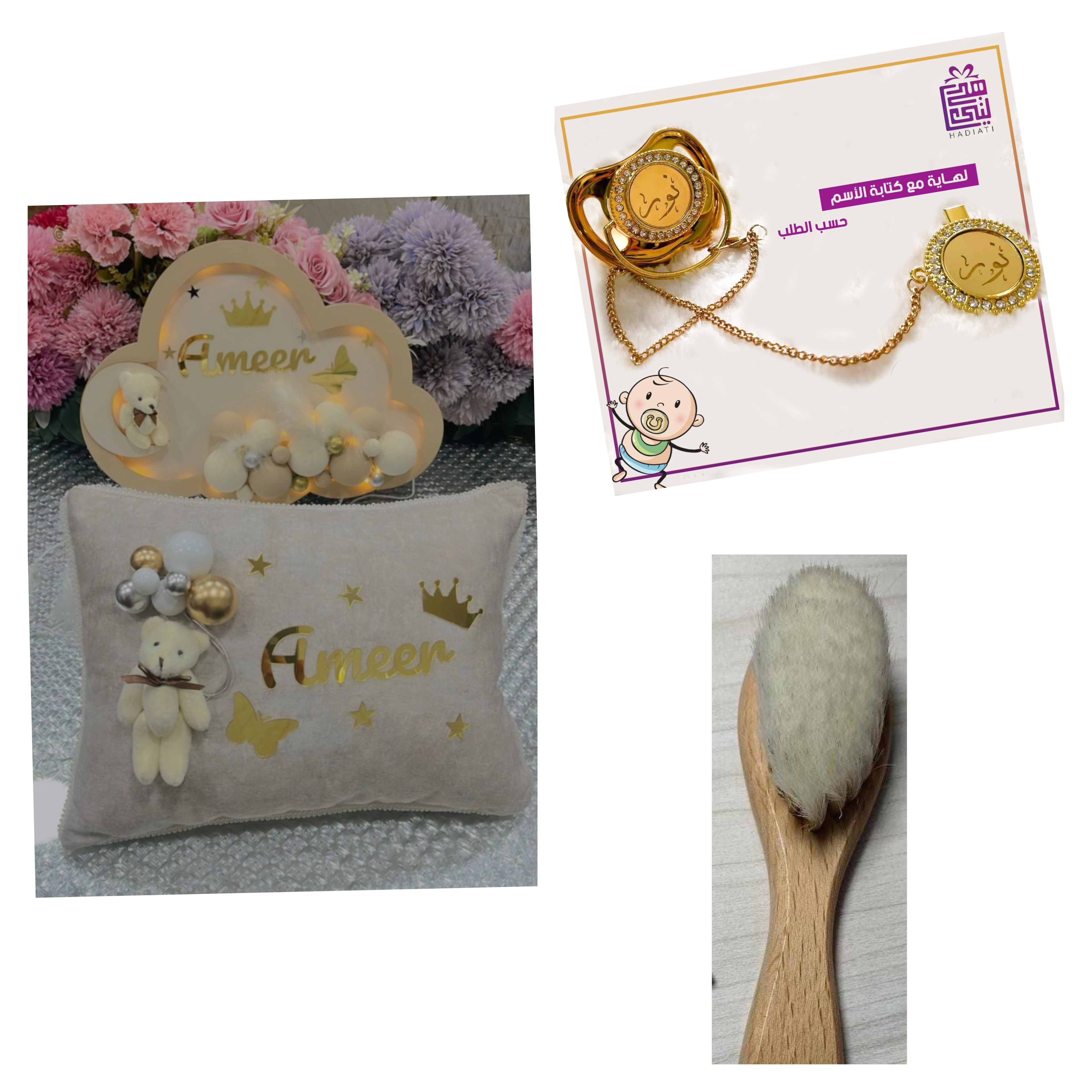 مخده لون بيج الاسم محمد لون الاسم دهبي مع الاشكال