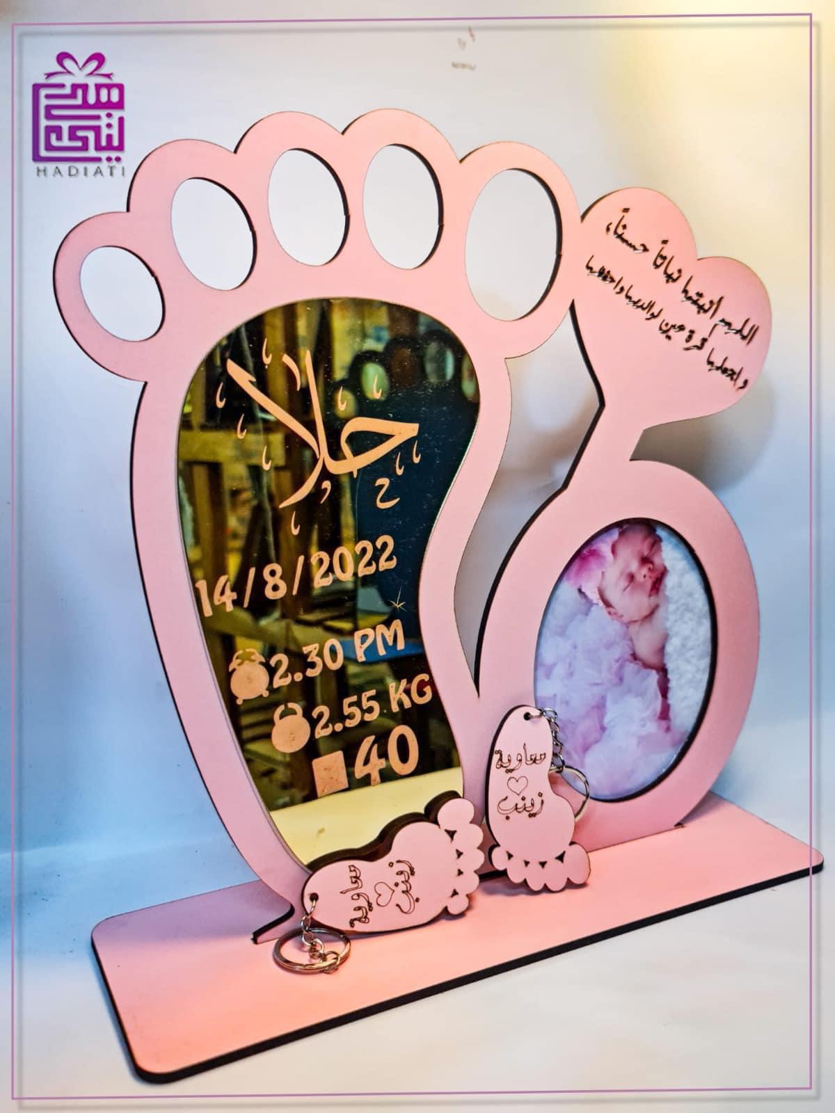 درع معلومات الطفل لون زهري اكرليك مع خشب