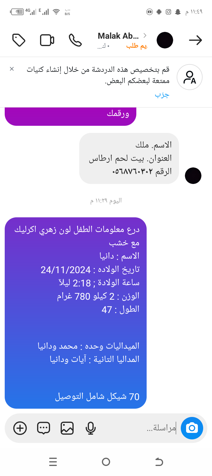 تاريخ الولاده : 24/11/2024 .......