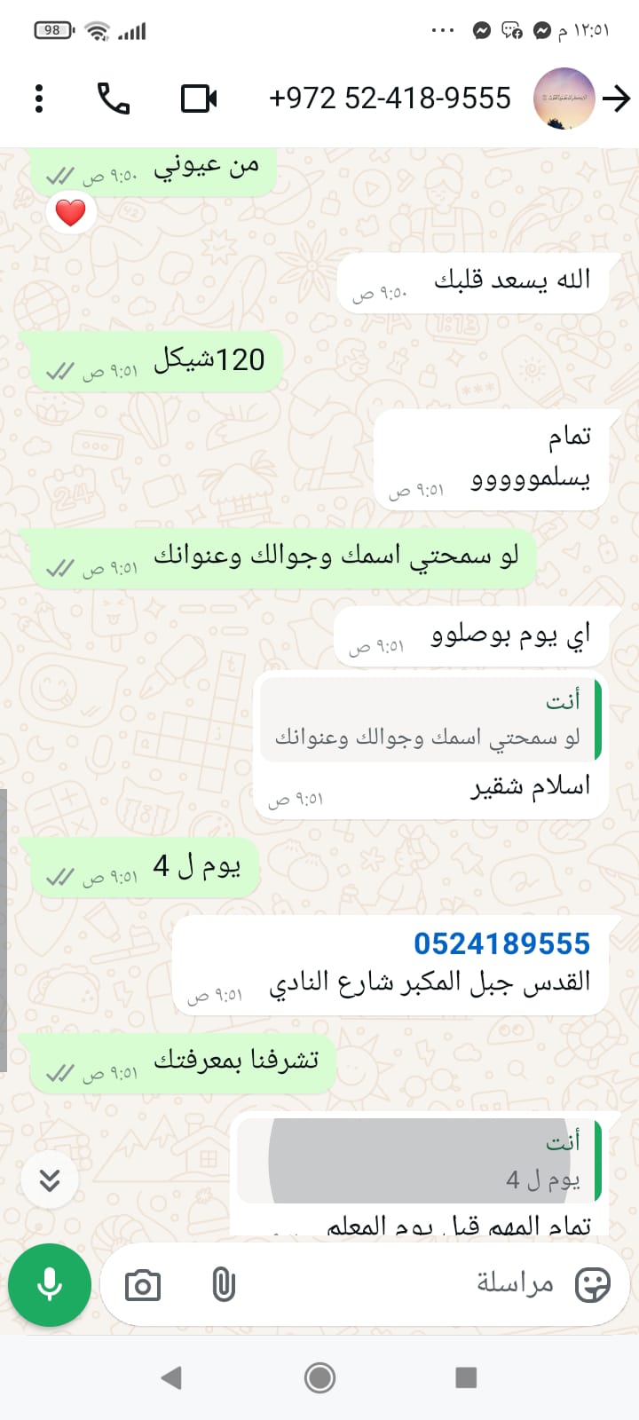 | السعر المبيوع | 120 شيكل |