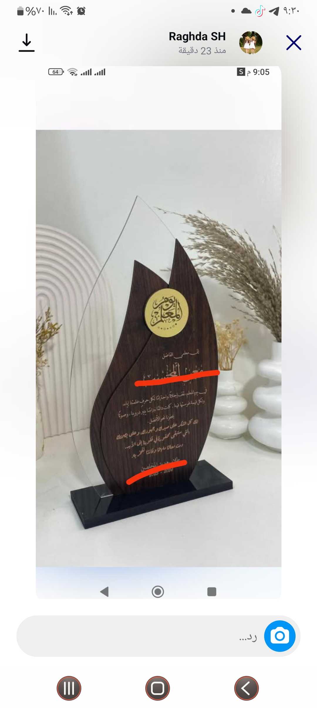 درع المعلم نفس اللون والتصميم والكتابه