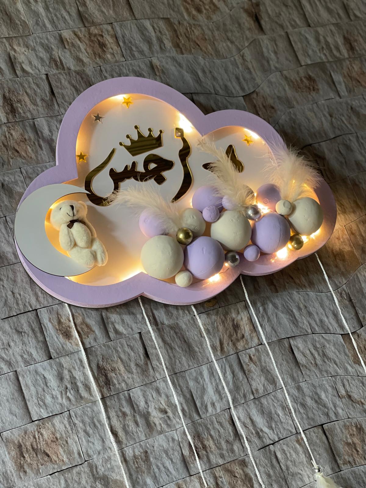 تعليقه غيمه لون نهدي الاسم أسيل لون الاسم ذهبي مع الاشكال