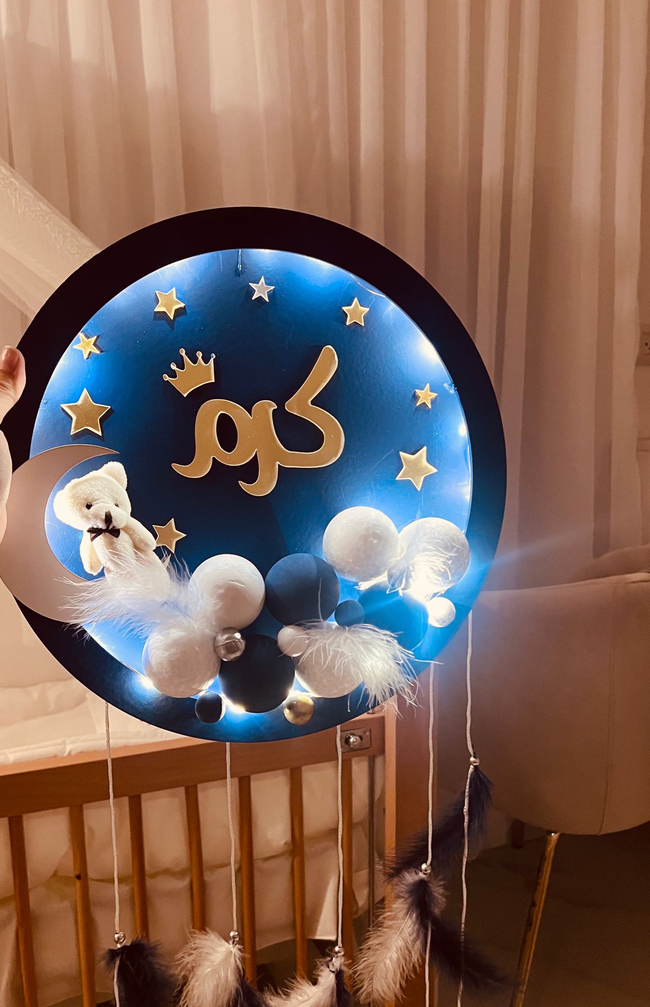 تعليقة على شكل دائري الاسم يحيى لون الاسم ذهبي مع الاشكال