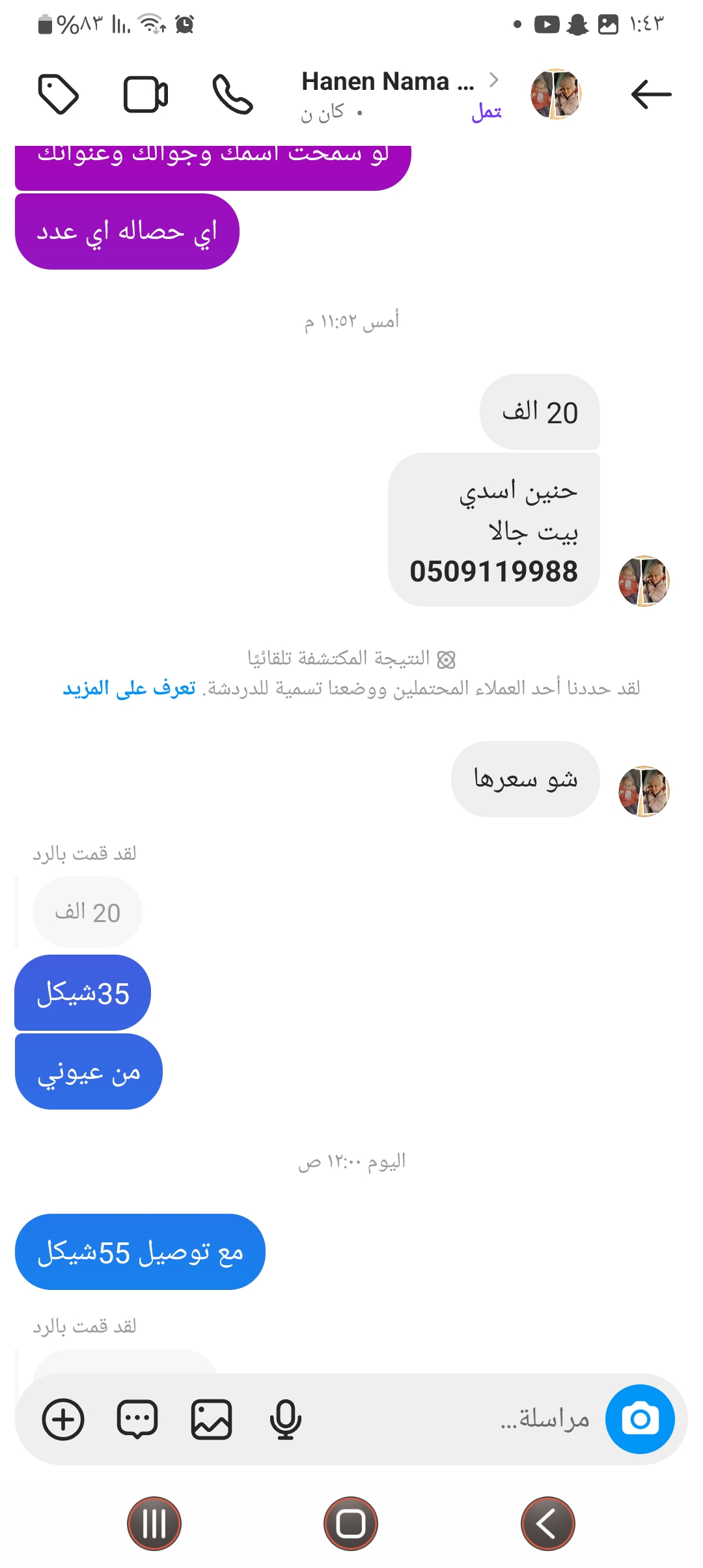 | سعر التوصيل | شيكل |