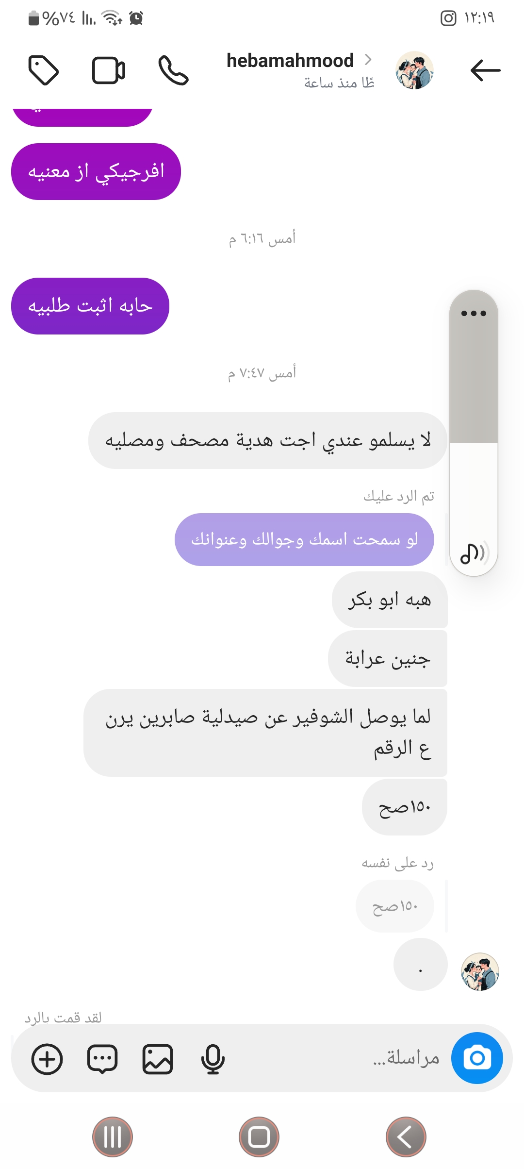 اسم الزبون هبه ابو بكر مندوبه إسراء
