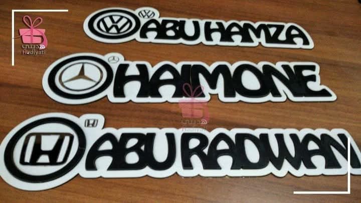 قاعده مع شعار للسياره ابيض مع اسود الاسم.... Mr.Mohanad مع شعار الاودي