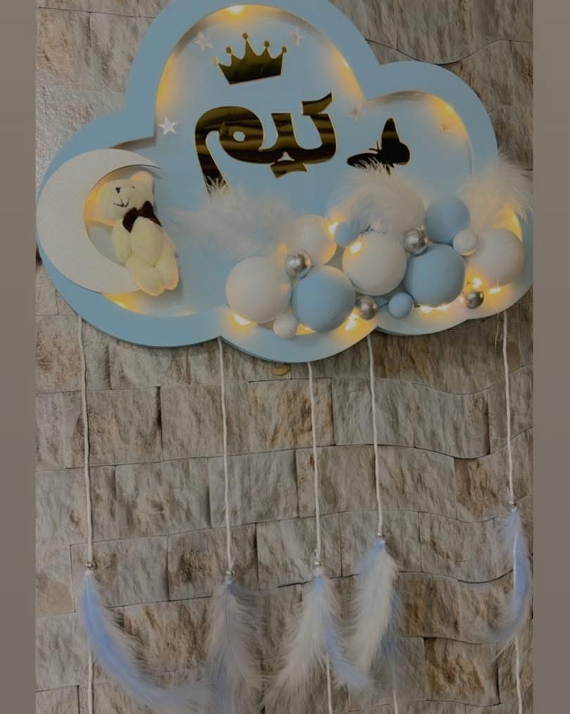 تعليقة غيمه لون ازرق الاسم محمد لون الاسم دهبي مع الاشكال