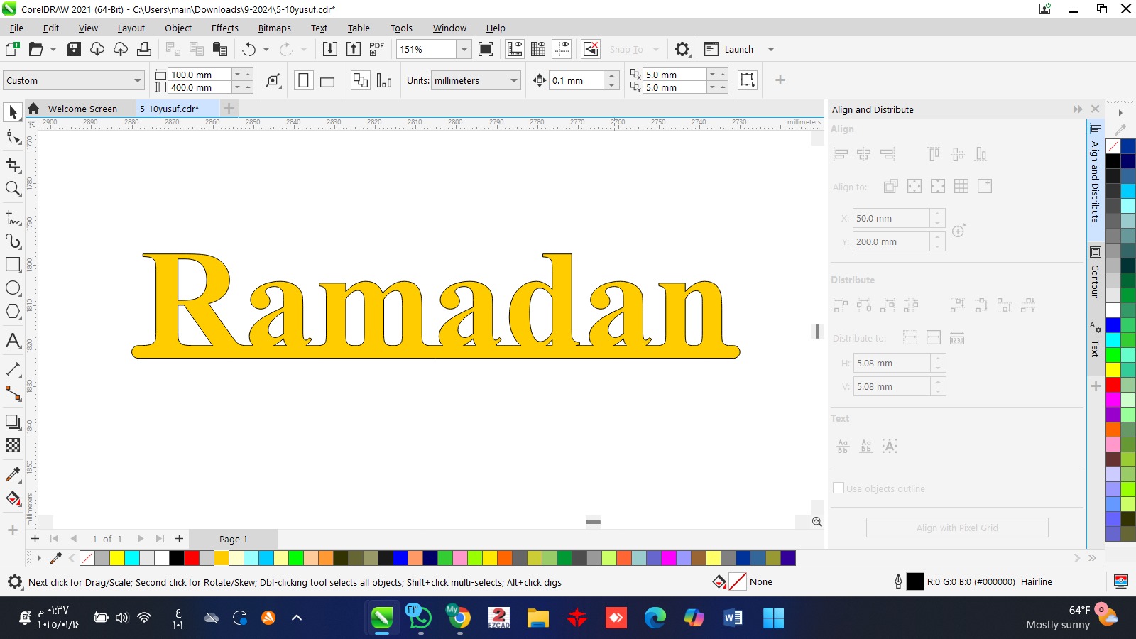 اسم Ramadan حجم 15 سم وارتفاع 3 سم خشب
