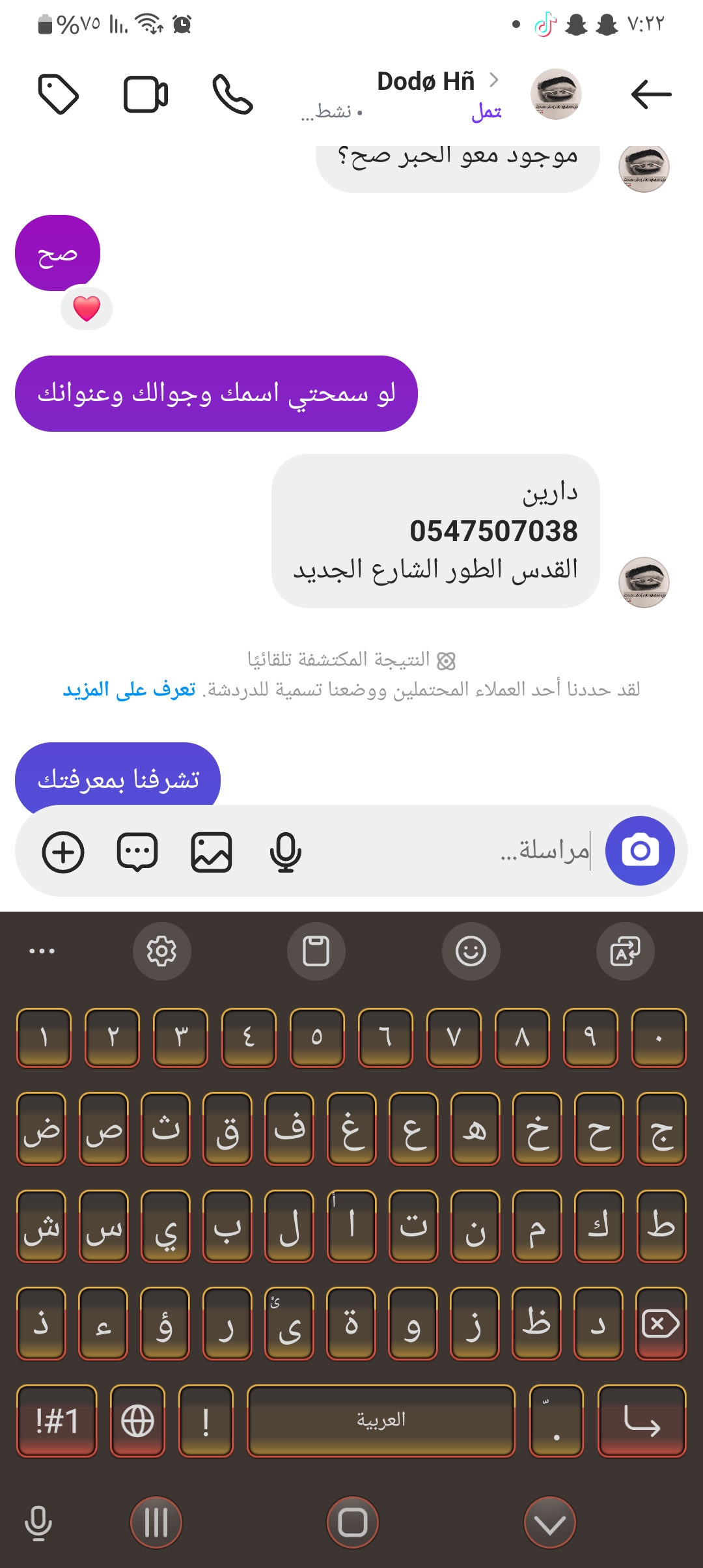 لون ذهبي لغه عربيه بفس صوره البصامه الي بعته