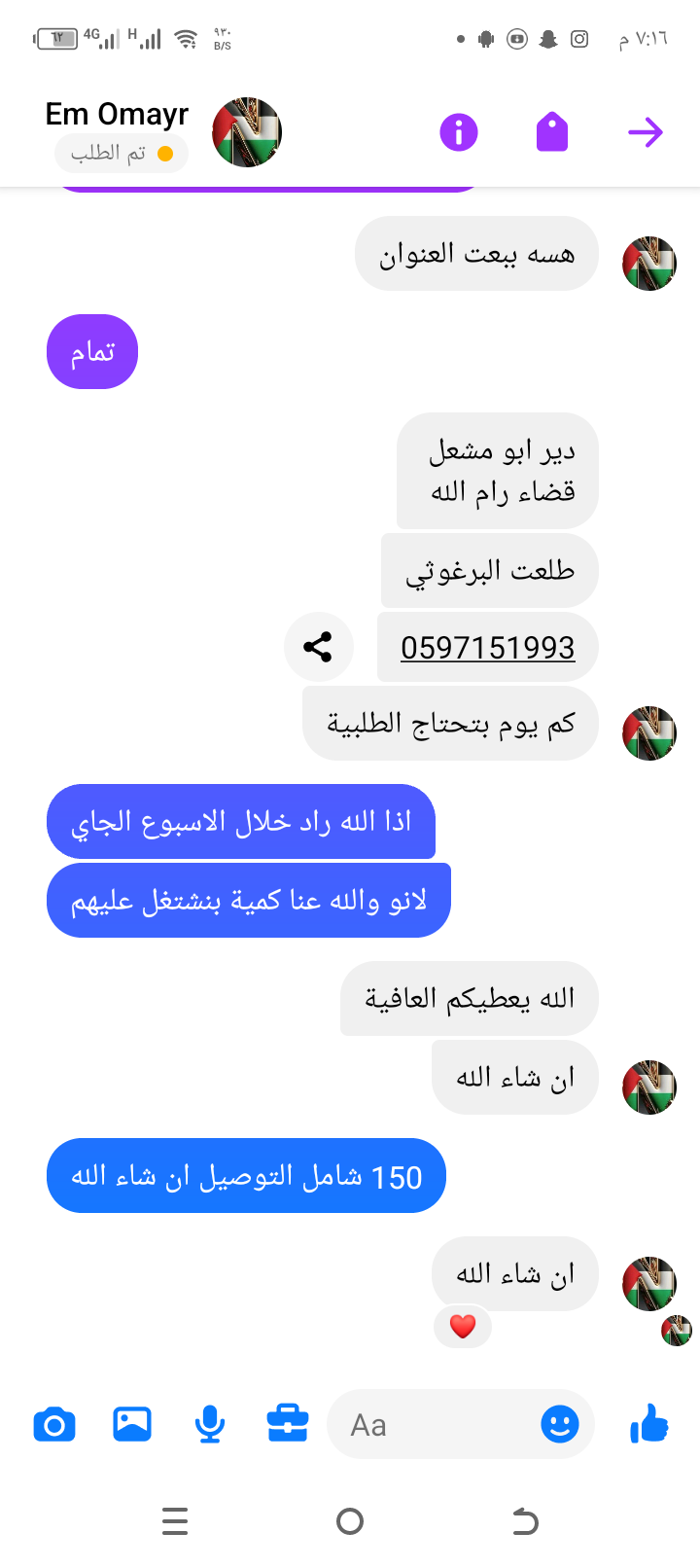 | السعر المبيوع | 150 شيكل |