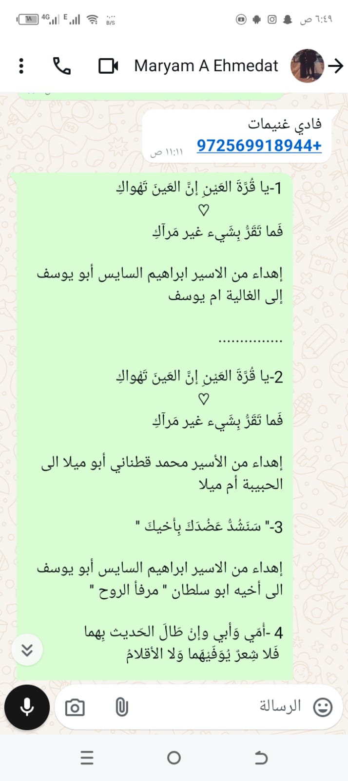إهداء من الأسير محمد قطناني أبو ميلا الى الحبيبة أم ميلا