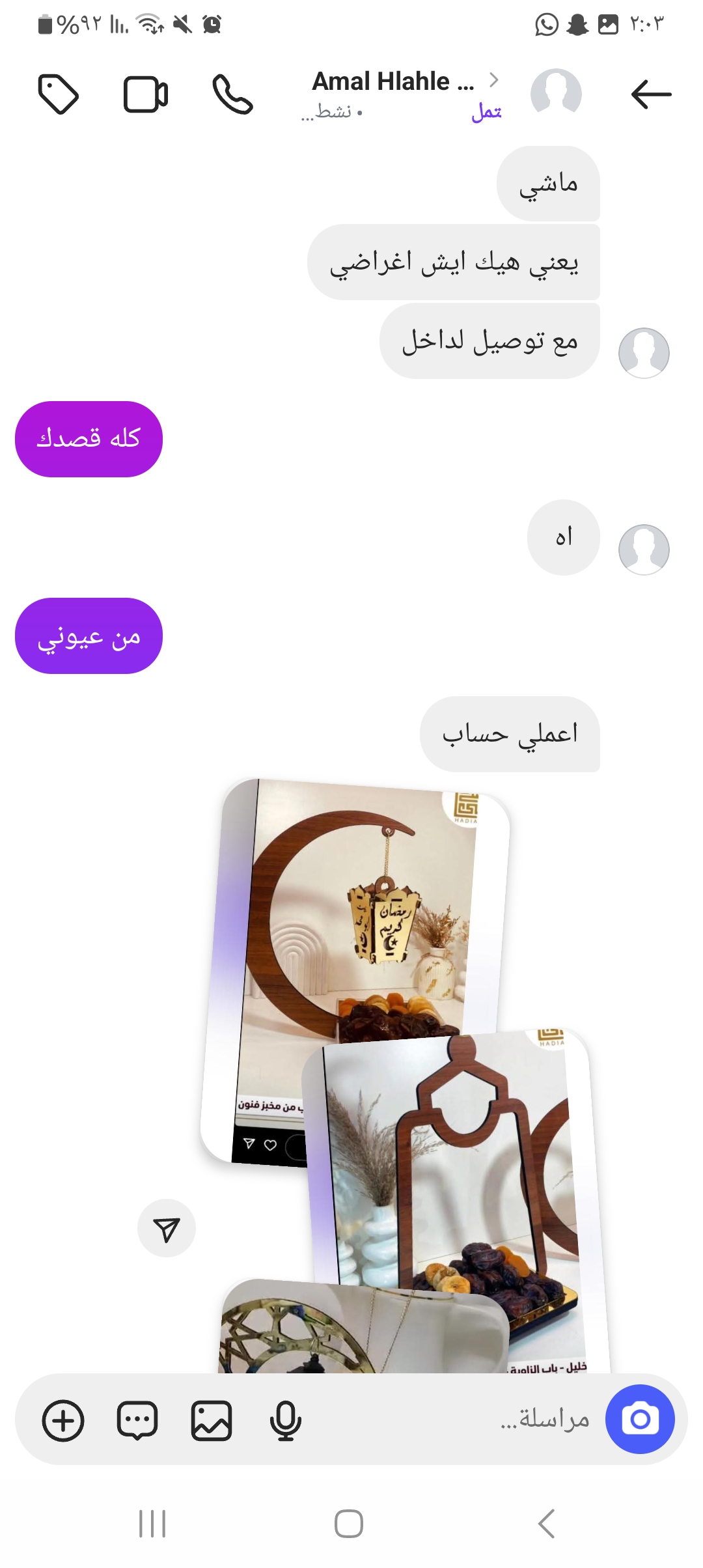 مضيئه مع فانوس مكتوب عليه نكتب رمضان احلى مع عا ئلة ابو النور ازبنفع