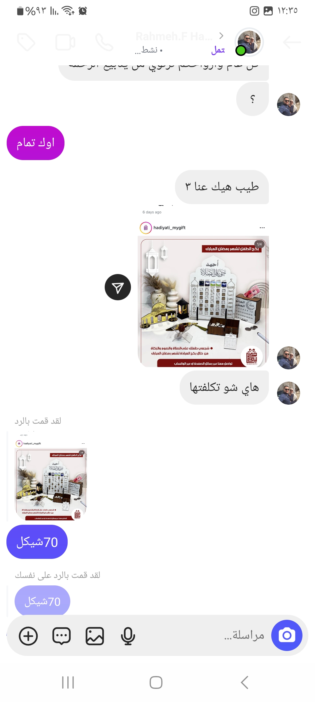 | السعر المبيوع | 70 شيكل |