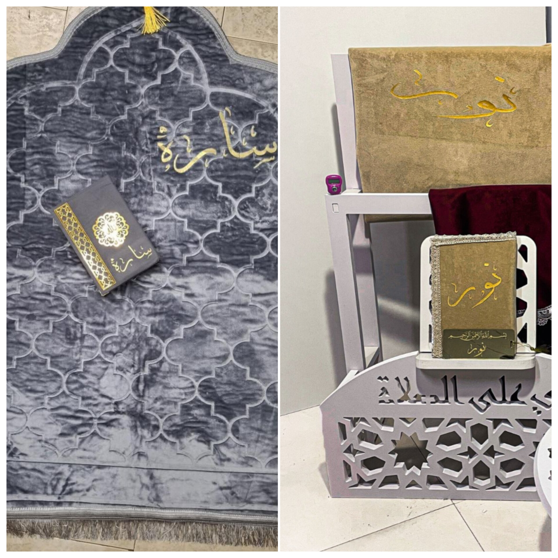 سجادة صلاة مع مصحف لون سكني الأسم هبة