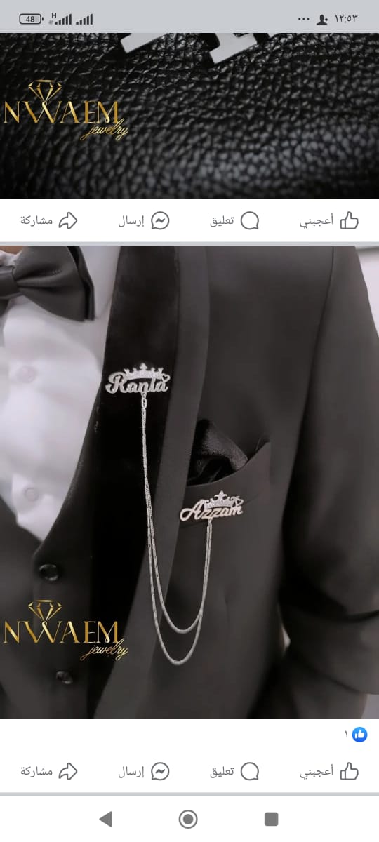 بروش بدله اسم : sharaf ع تاج وAsmaa ع تاج لون فضي لغه الانجليزيه